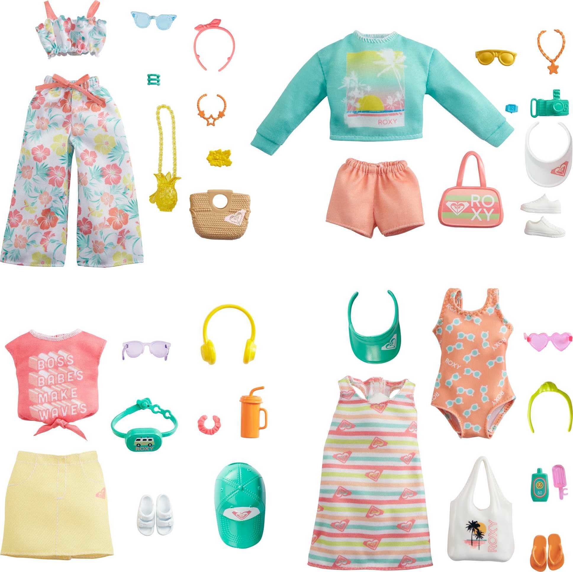 - This Barbie doll fashion pack incorporates recognizable icons from popular lifestyle brand Roxy into graphics and prints (doll sold separately)