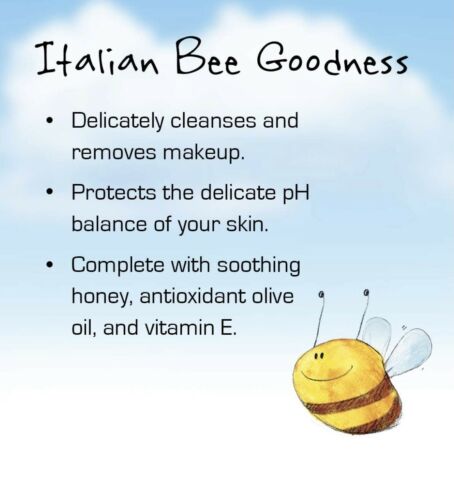 BeeMy Honey Facial Cleanser Made in Italy Natural 5.07 oz Make-up Remover pH balance. Gentle and soap-free, BeeMy Honey Facial Cleanser delicately cleanses all skin types and helps your face appear more radiant by protecting the delicate pH balance of your skin. It has a natural, clean scent and the soothing honey, antioxidant olive oil and vitamin E ingredients, leaves your face soft and not oily or dried out. Our facial cleanser also works great as a makeup remover! Made in Italy, BeeMy Honey Facial Cleanser not only feels good on your skin, itâs good for you, too. Formulated from ingredients of 98.4% natural origin, our cream cleanser is free of parabens, silicones, mineral oils, SLS/SLES, PEG, PPG and coloring agents. Hypoallergenic and dermatologist tested, BeeMy Honey Facial Cleanser wonât clog pores and contains emulsifiers derived from pure olive oil, vegetable oils, vitamins, and natural extracts. BeeMy Honey Facial Cleanser is no ordinary skin wash. It is formulated with the finest of ingredients to gently but effectively cleanse and help your skin glow, bringing natural Italian luxury to your whole hive at a price you can afford.Soothing honey, antioxidant olive oil & Vitamin E, delicately cleanses, & make-up remover The light, natural fragrance adds just the right amount of subtle scent Hypoallergenic, dermatologist tested, & made with ingredients of 98.4% natural origin Free of parabens, silicones, mineral oils, & coloring agents Gentle enough to be used several times per day