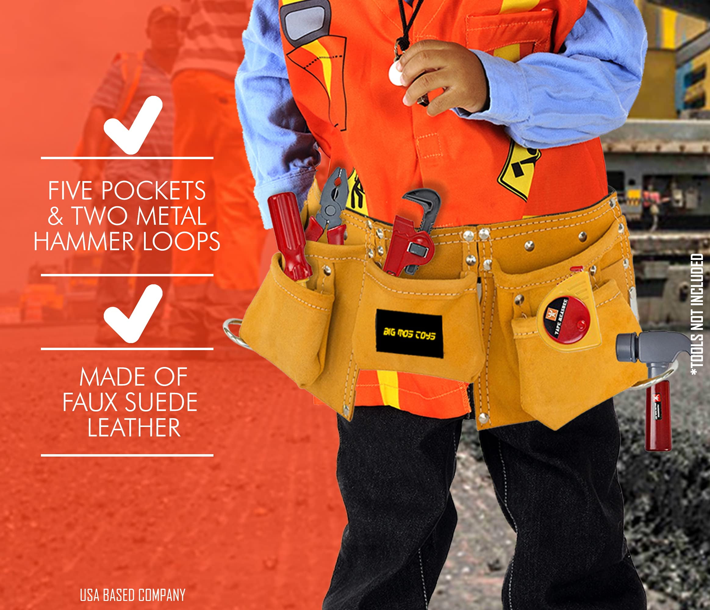- Pretend Play High Quality Tool Belt includes one belt with pockets, and rivets at the key stress points for extra reinforcement.