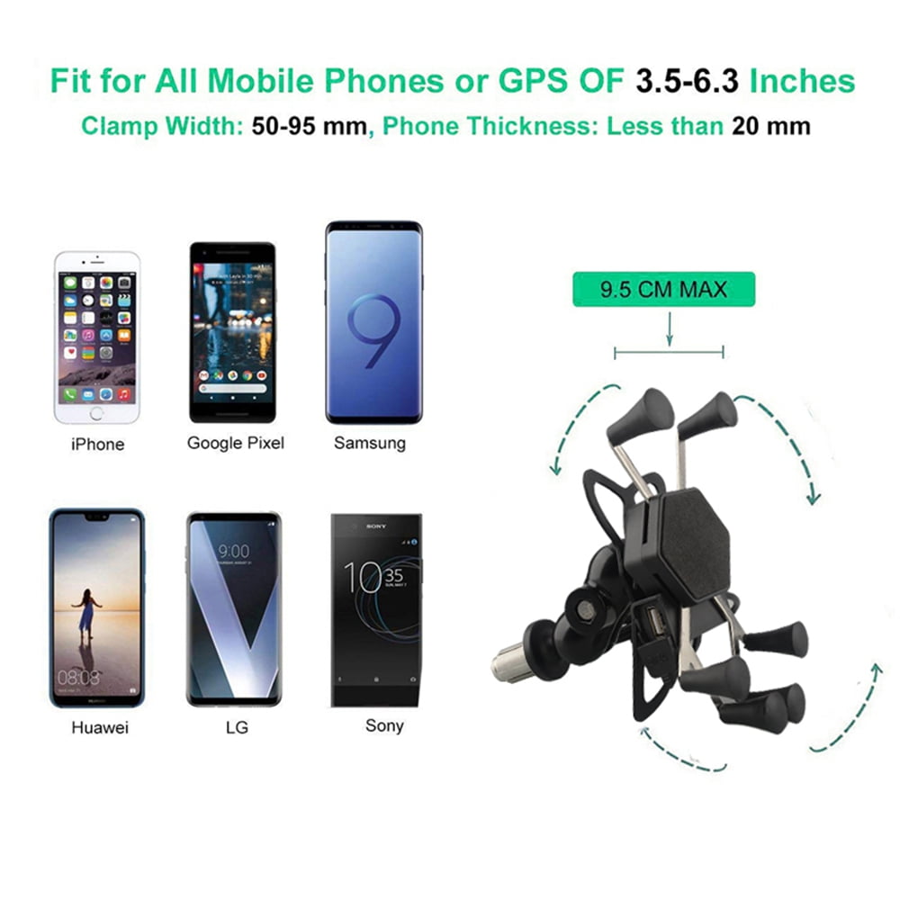 - Two Installing Ways + 360 Degree Freely Rotation + Waterproof Design — Available for installation both on motorcycle Fork Stem Mount and rear-view mirror poles; 360 degree rotating to suit any angles as you need; overall sealed design with switch and USB port with waterproof cap to make your riding easily even in rainy days