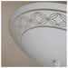 White scroll design glass shade. 12-1/2" diameter x 5-1/4" height. Uses two clear medium base bulbs 60 watt maximum (not included). cULus Listed.nullnullTWO LIGHT SEMI-FLUSH MOUNT Finish=White