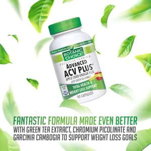 - Bullet: WEIGHT LOSS SUPPORT: Botanic Choice Advanced Apple Cider Vinegar capsules are an amazing weight loss supporter with a blend of stronger-than-ever nutrients. POWERFUL INGREDIENTS: Includes apple cider vinegar, garcinia cambogia extract, green tea extract, chromium picolinate, calcium and a proprietary blend. FOR BEST RESULTS: Use ACV capsules in conjunction with a reduced calorie diet and exercise plan. Includes 90 capsules. TAKE CONTROL OF YOUR APPETITE: These apple cider vinegar capsules work to help ease cravings. Avoid the bitter aftertaste of supplement gummies while experiencing the natural benefits of our unique formula with green tea extract. GREAT FOR ALL ADULTS: Apple cider vinegar pills help men and women alike. WE GUARANTEE YOU’LL LOVE IT: Retake control of your body. Try it, love it, or your money back within one year of purchase. INGREDIENTS YOU CAN TRUST: Since 1910 customers like you have trusted Botanic Choice to provide high-quality natural formulas, nutritional supplements, and more. Check out our full line of health products.
