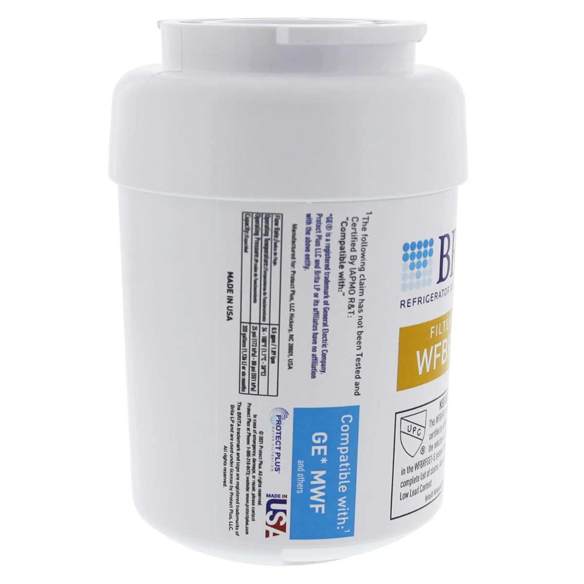 The BRITA MWF Refrigerator Water Filter provides 300 gallons of fresh and great-tasting water at a price you are going to love. BRITA’s 50 years of water filtration expertise is now available as a refrigerator filter. NSF/ANSI 42 certified to reduce chlorine taste and smell, it’s the perfect companion for your compatible GE® or Hotpoint refrigerator. Shop this great value filter as a replacement for the GE Smartwater MWFP, MWFA, GWF, Kenmore 9991, WSG-1, and WFC1201 refrigerator water filters.