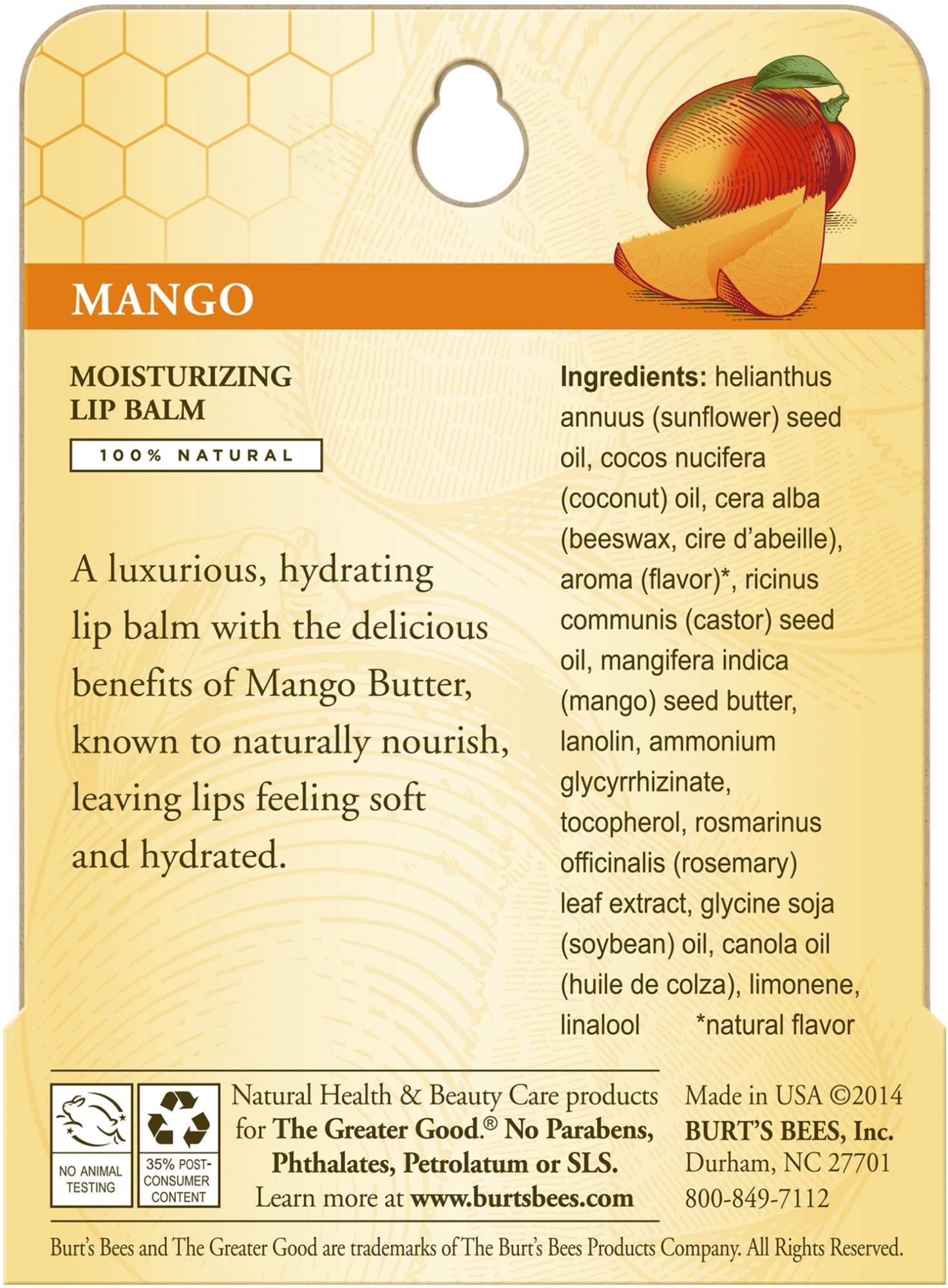 - LIP CARE: Bursting with sweet tropical flavor, refresh and renew your lips with Burt’s Bees Mango Moisturizing Lip Balm