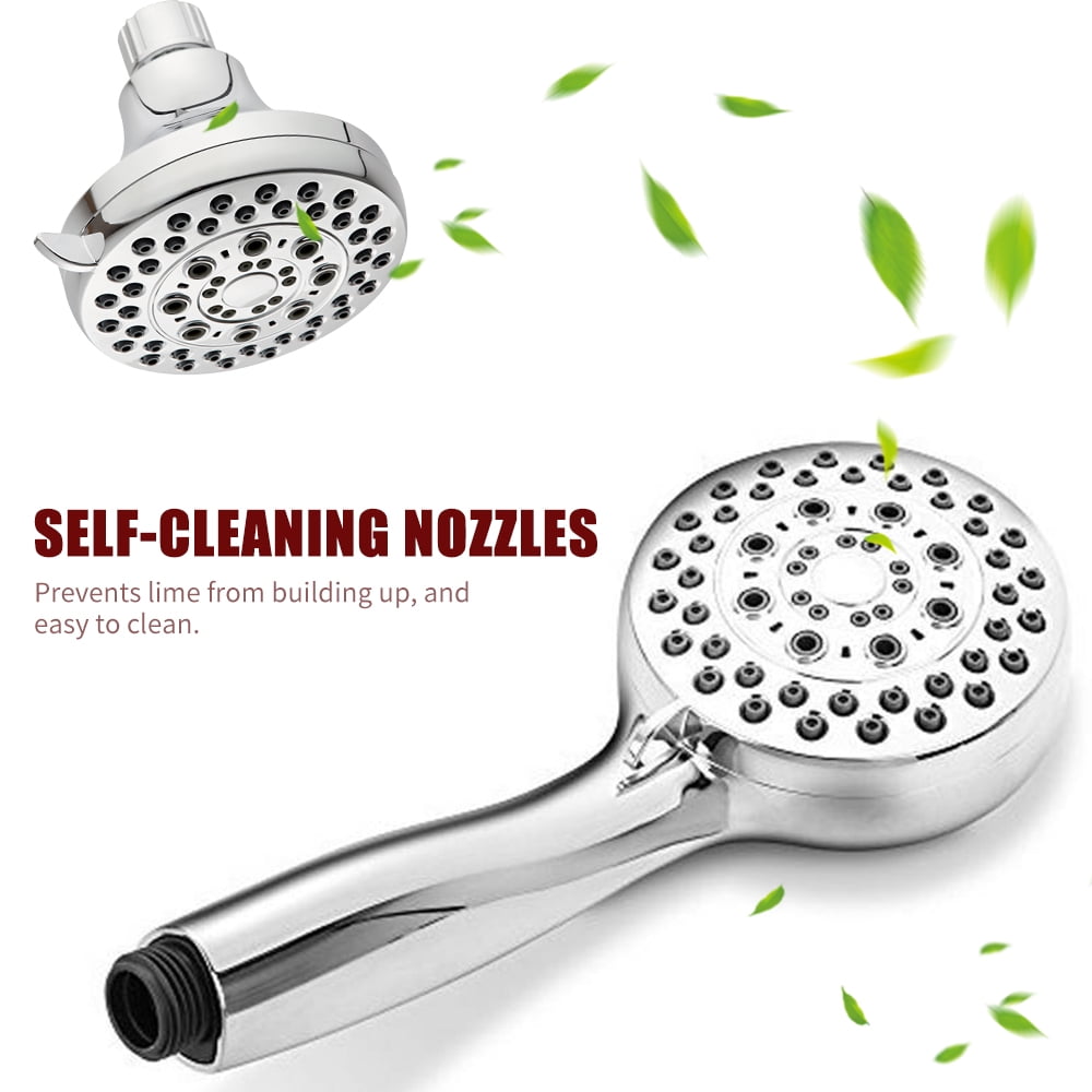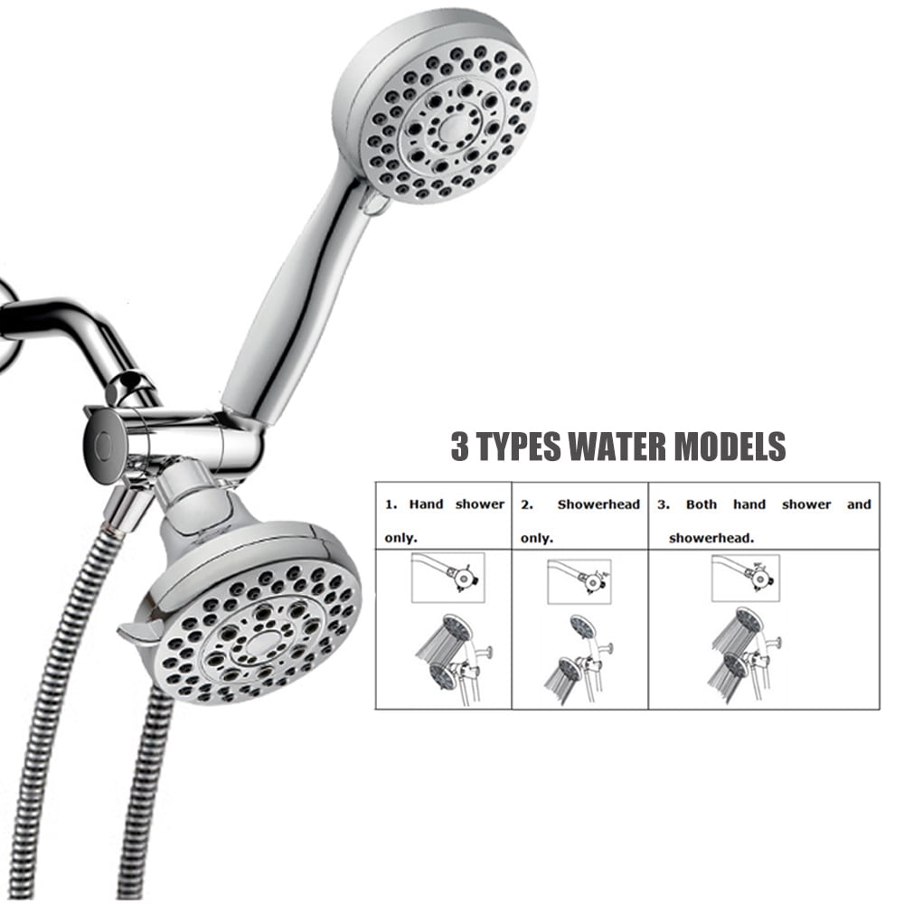 Handheld showerhead and rain shower head combo with stainless steel hose and 3-way water diverter set, which has 5 spray settings for your choices, different settings provide a total customized shower experience. The chrome finish is tough and beautiful, built to resist scratch, tarnishing, and corrosion, suitable for family, hotel and school, etc.