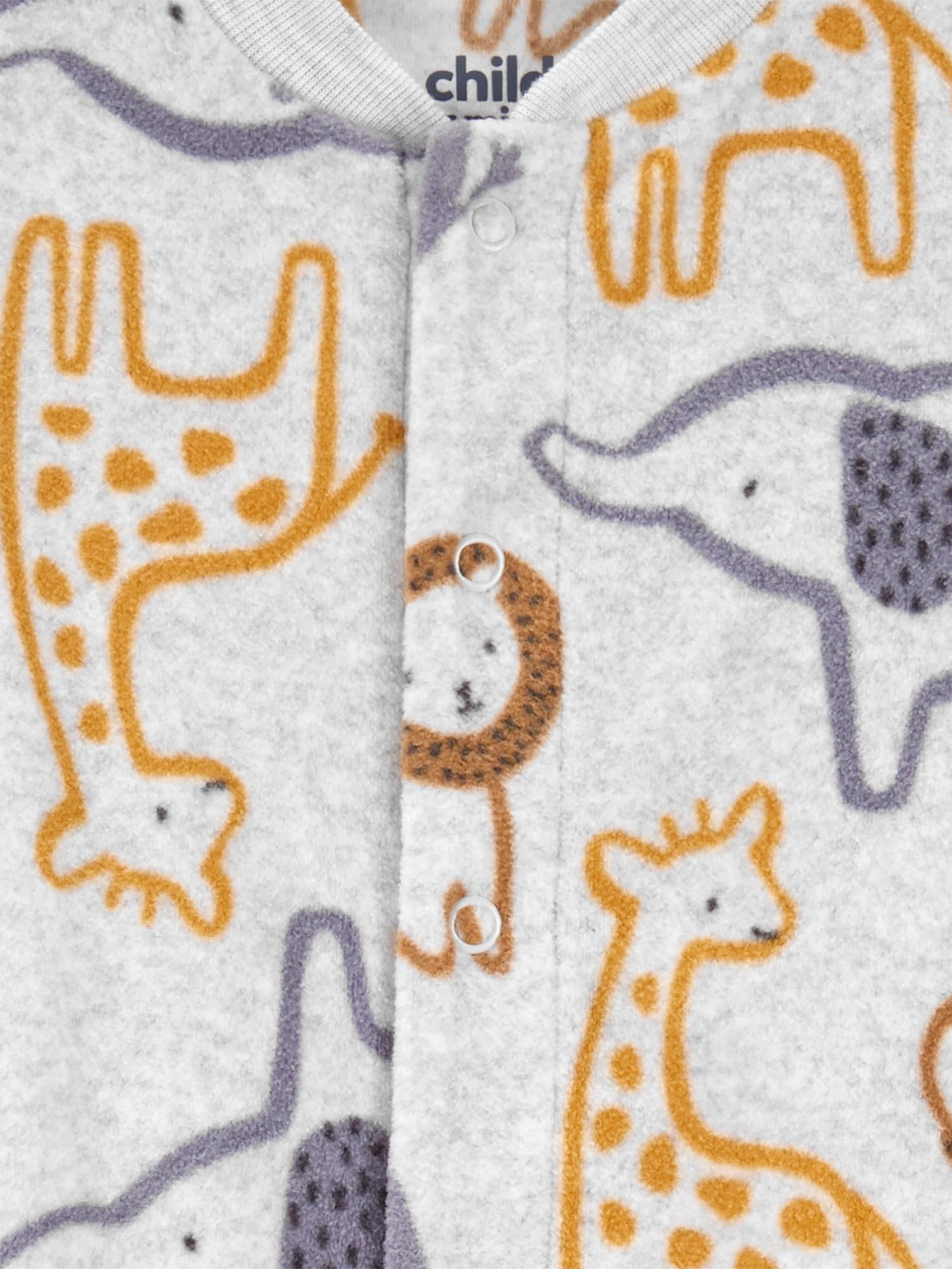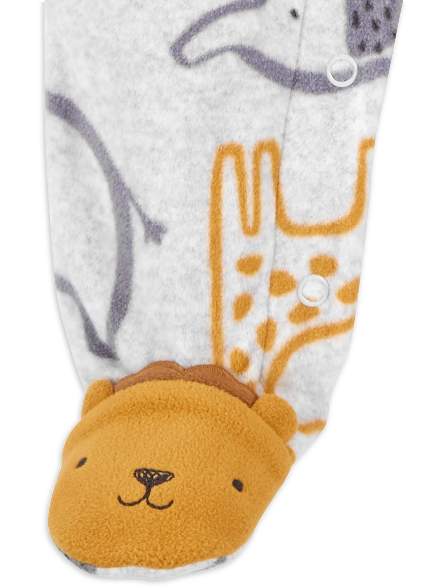 Your baby ranger is safe and snuggled the whole night through in this Carter’s Child of Mine Sleep and Play. These all-over safari print pajamas are made with microfleece fabric for a perfect night’s slumber. Featuring a two-way zipper, these footed pjs make changes easier than ever. Baby boy can sleep comfortably with the safety tab feature that protects his little chin. The colorful animal print and foot art make this a fun look that baby can wear all day. Snag this cozy set as a great gift for new parents too!