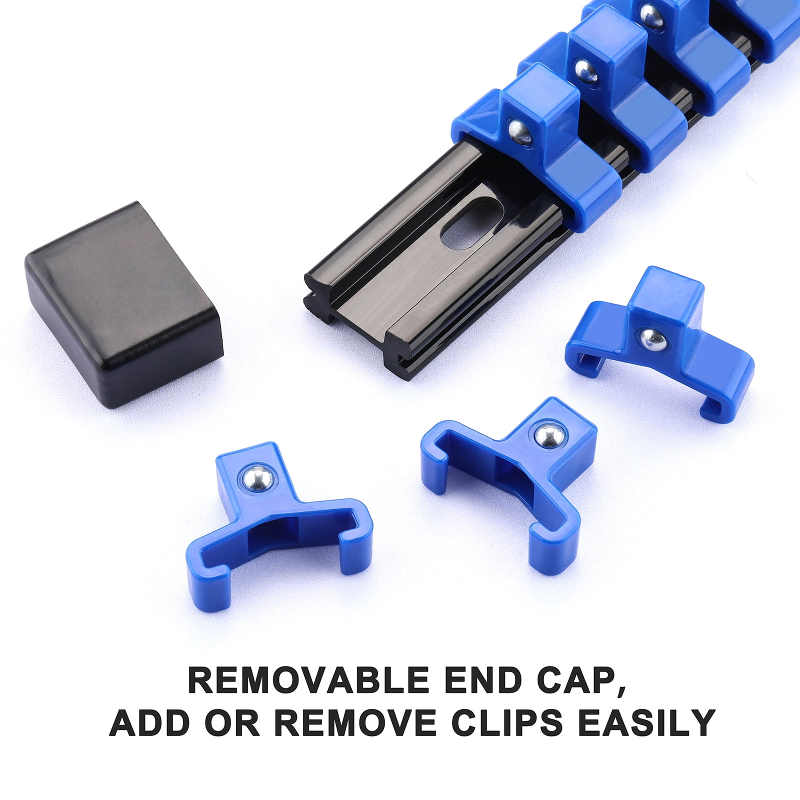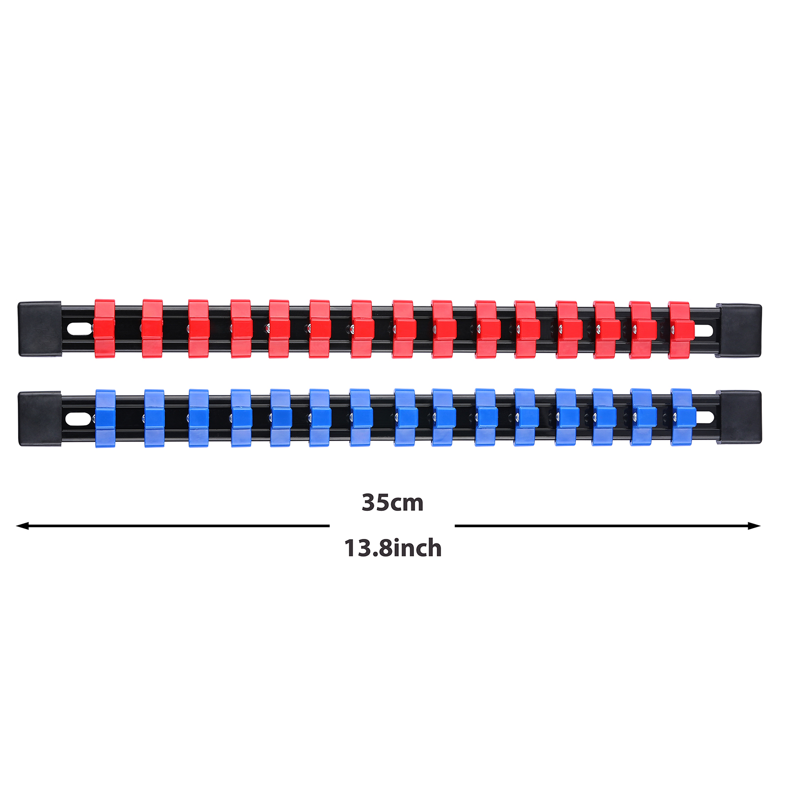 - Set includes 6 pcs 3/8-inch Socket holder rails. Total holds up to 90 sockets: 45 x 3/8" Dr. clips(red), 45x 3/8”Dr. clips(blue)