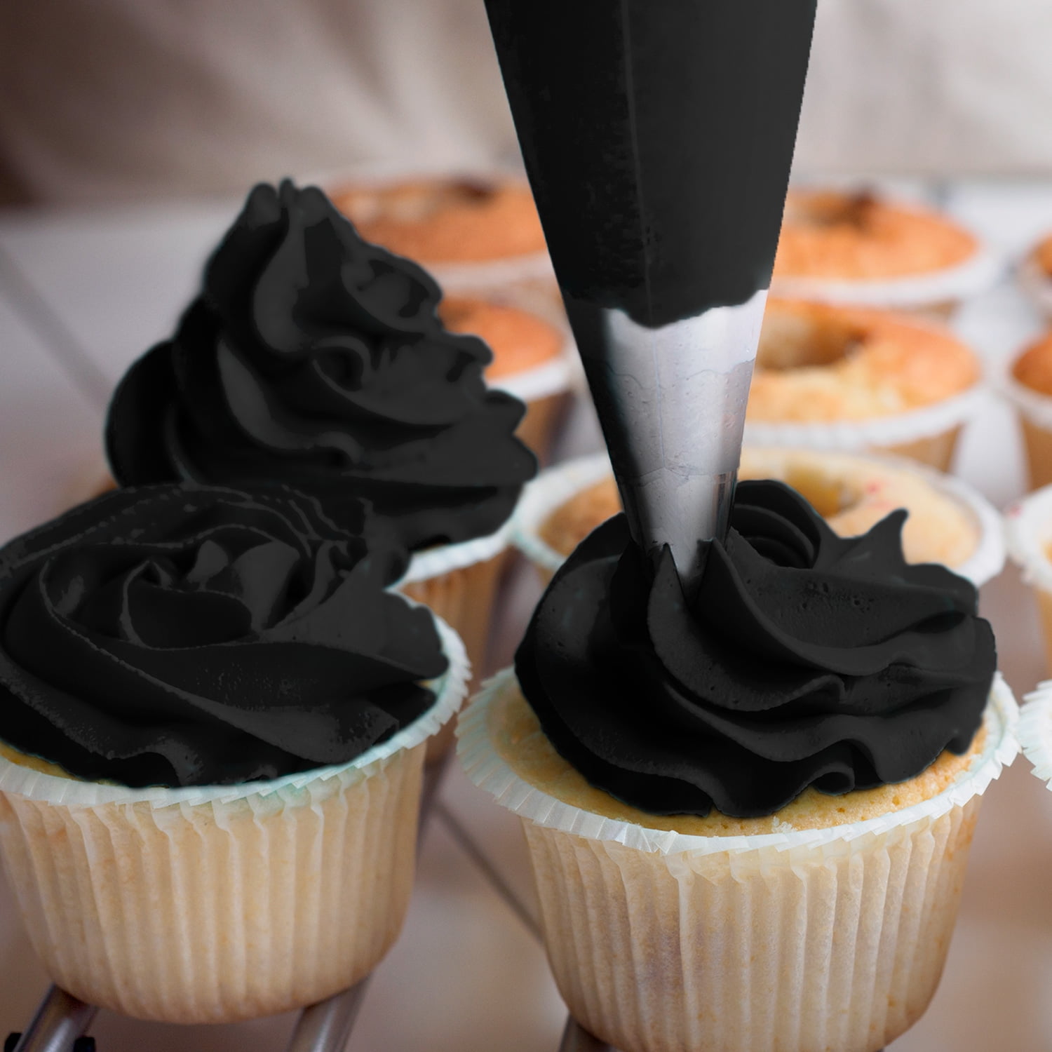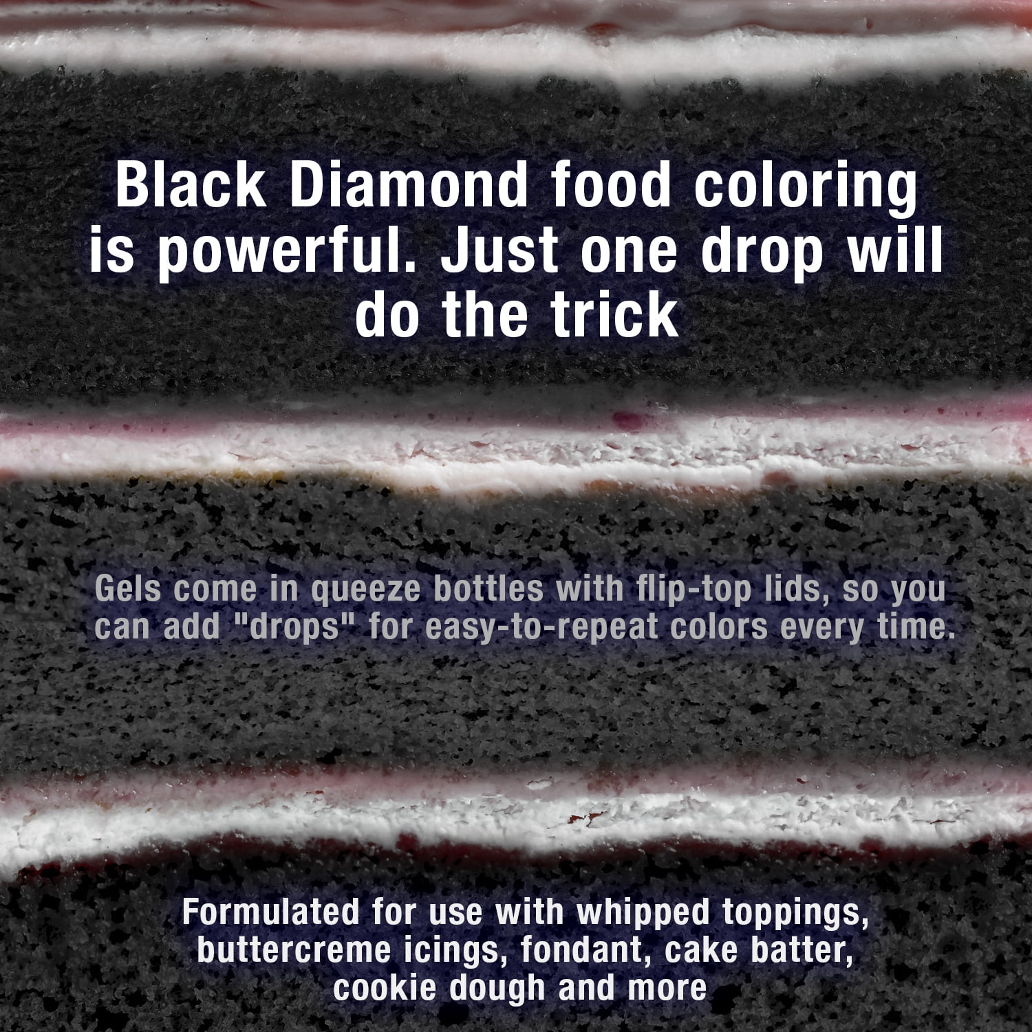 Creating eye-catching baked goods is easy with this Chefmaster black diamond liqua-gel food coloring! This highly-concentrated gel coloring is formulated to add brilliant color to icing, fondant, batters, and even beverages without altering their flavor, color, or texture. It features a rich, deep coal black color that will make an eye-catching addition to your confectionary creations. This black diamond liqua-gel food coloring makes it easy to use your creativity to create stunning baked goods that will dazzle your customers! It’s also gluten-free and vegan, making it a versatile addition to any decoration. To achieve a lighter shade, you can use this product in conjunction with Chefmaster’s liqua-gel food coloring whitener (sold separately).