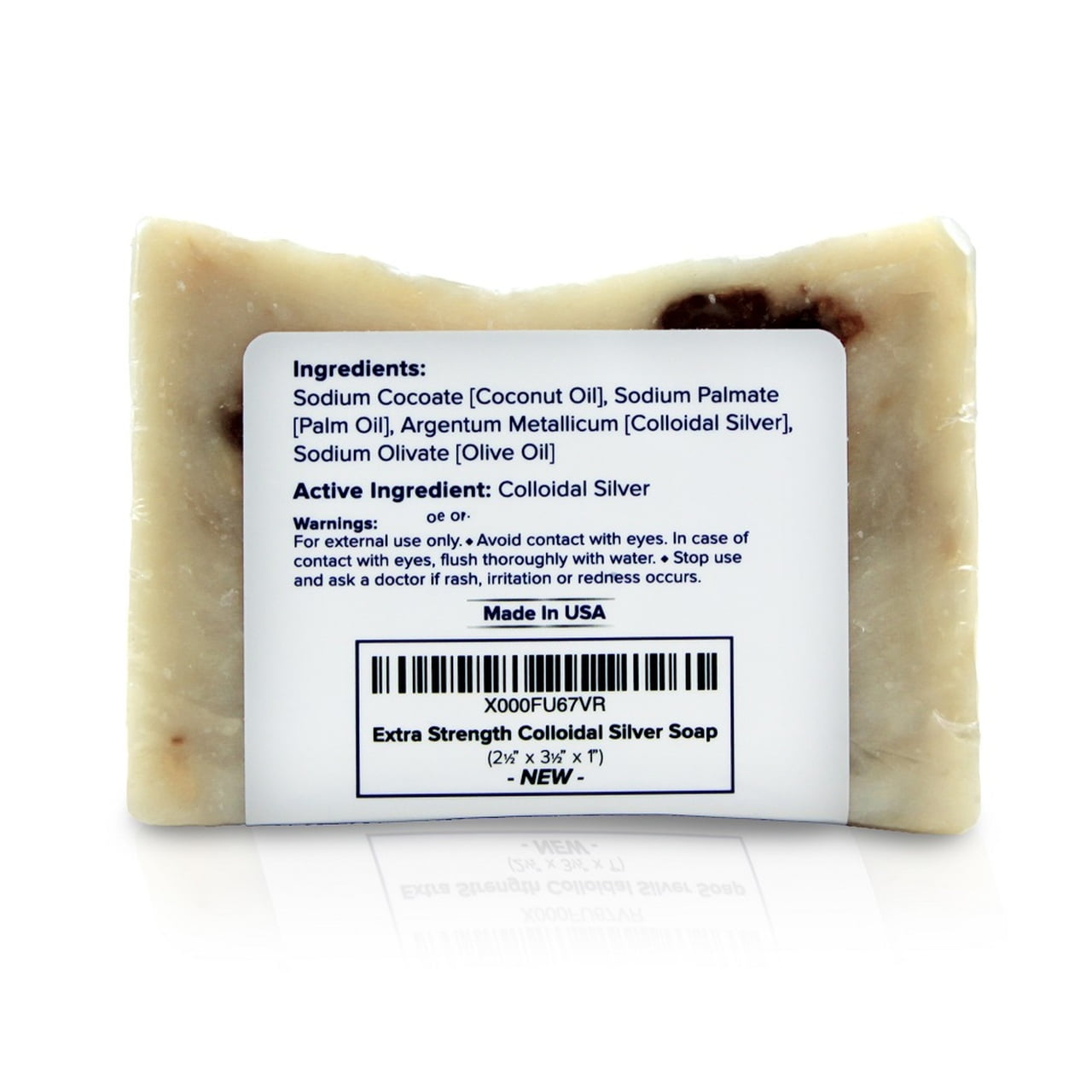 Our extra strength soap is just like our regular soap âÃÂàbut BETTER! It is milled and remelted using even more Colloidal Silver. You will love the lather that this rustic, hand made soap imparts. Due to the nature of this soap, it is made all by hand using different equipment than our regular soap, resulting in a very rustic looking bar.All oils in our soap are food grade!