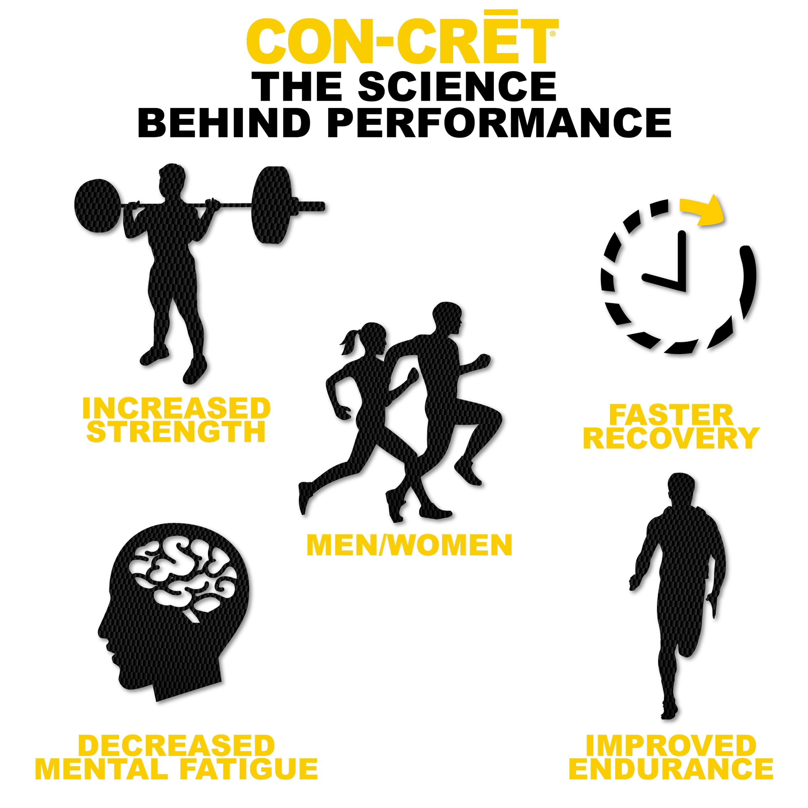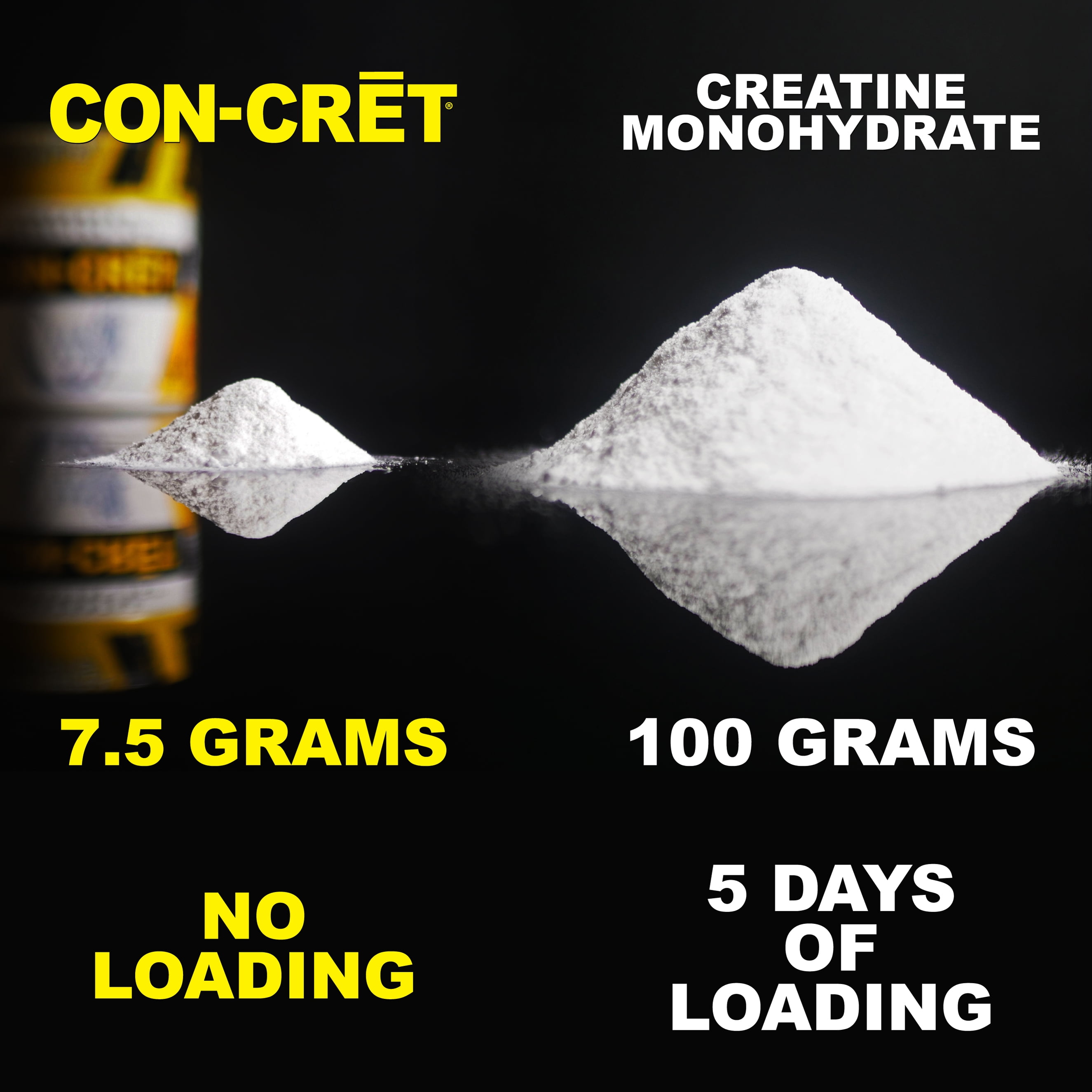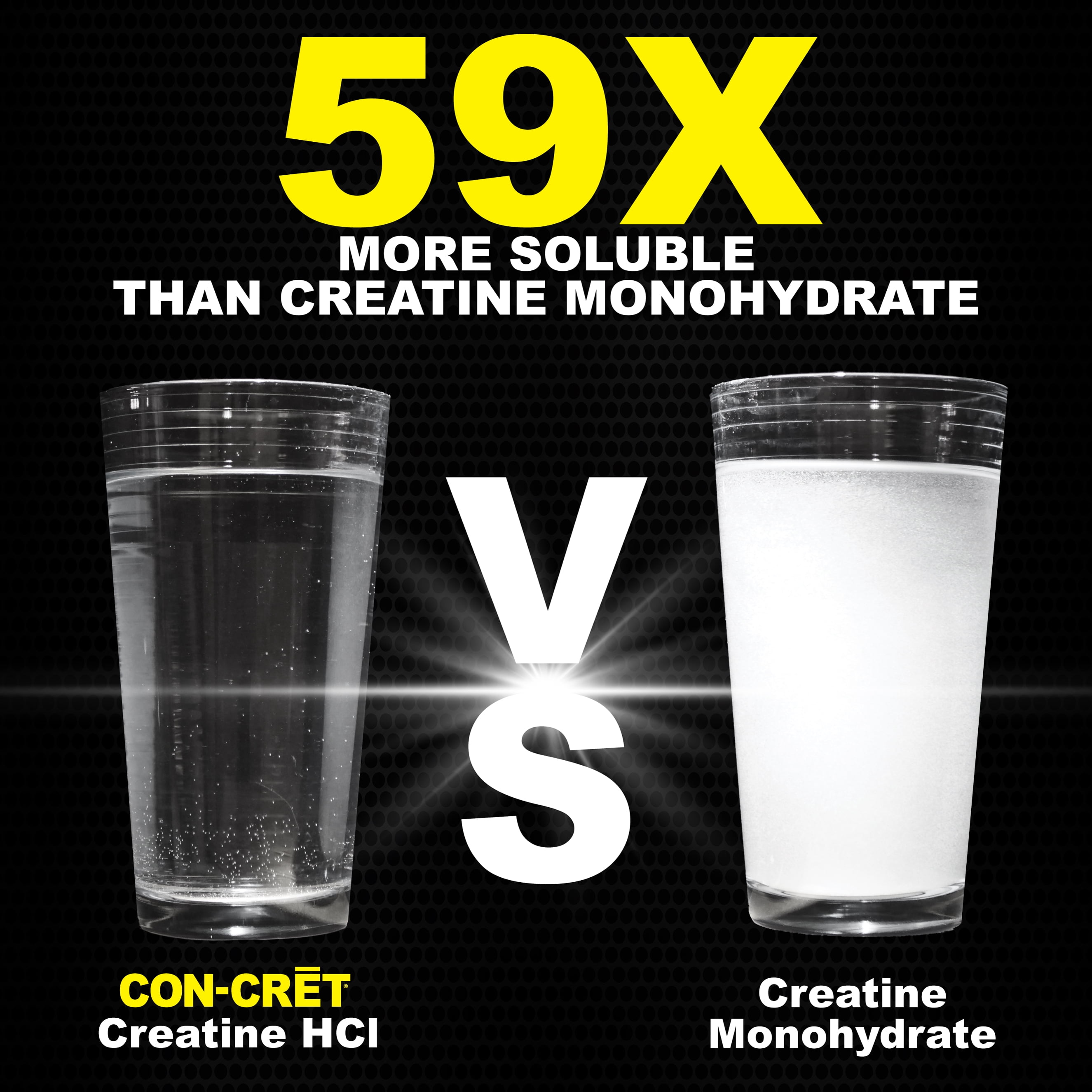 CON-CRET® Patented Creatine HCl® revolutionized the sports nutrition category. Because it is more stable, soluble and concentrated, CON-CRET® provides all the benefits of creatine at a significantly lower dose and without negative side effects*. With CON-CRET,® there is no cycling and no cramping, bloating, or water retention. CON-CRET® allows Micro-Dosing® based on your body weight and workout intensity.