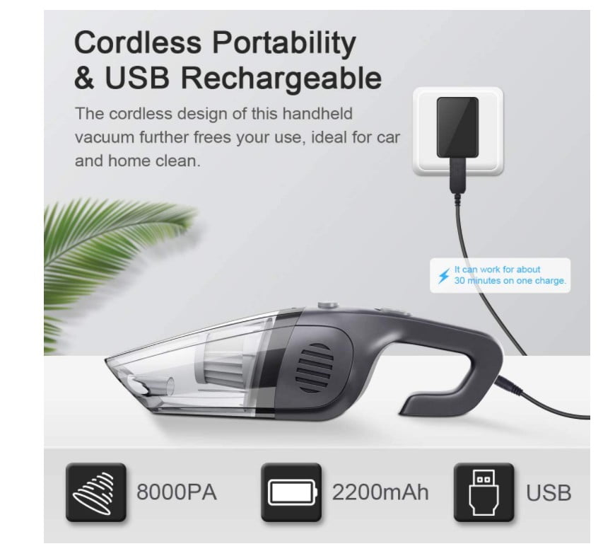 This cordless handheld vacuum cleaner allowing your free movement from room to room without bulky and tangled cords. It’s the lightweight and ergonomically designed handle, the flat bottom body that allows for easy sliding as you clean your floorboards and seat corner. Great for Home, Garden, kitchen.