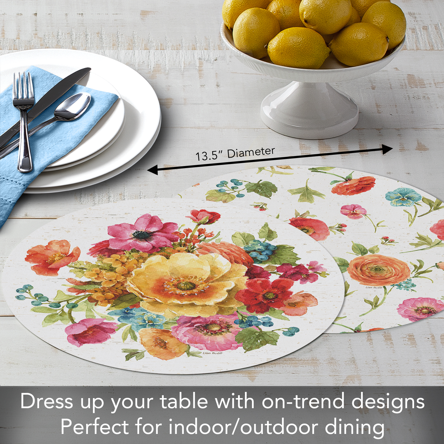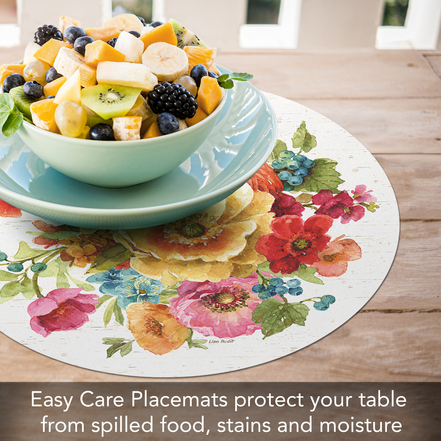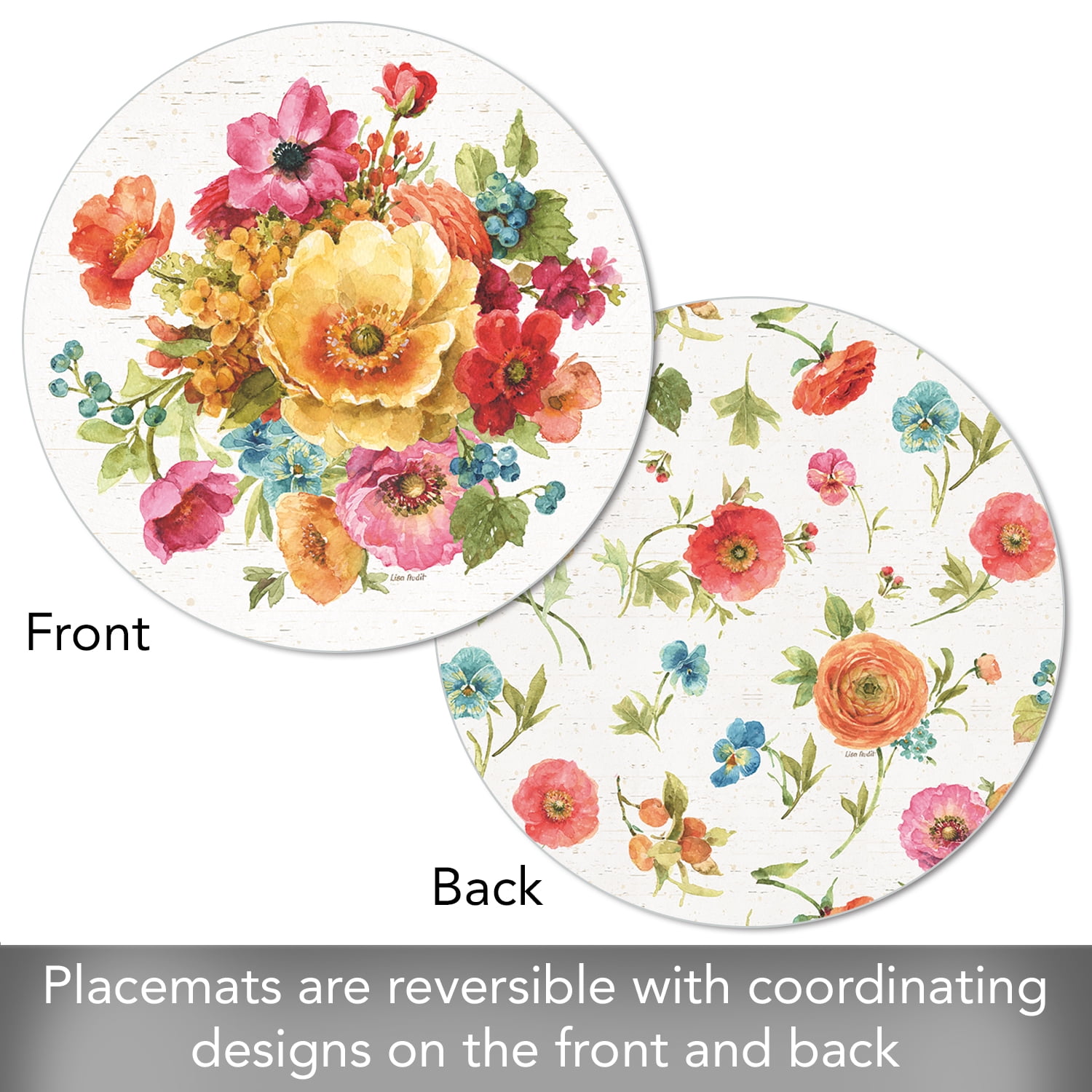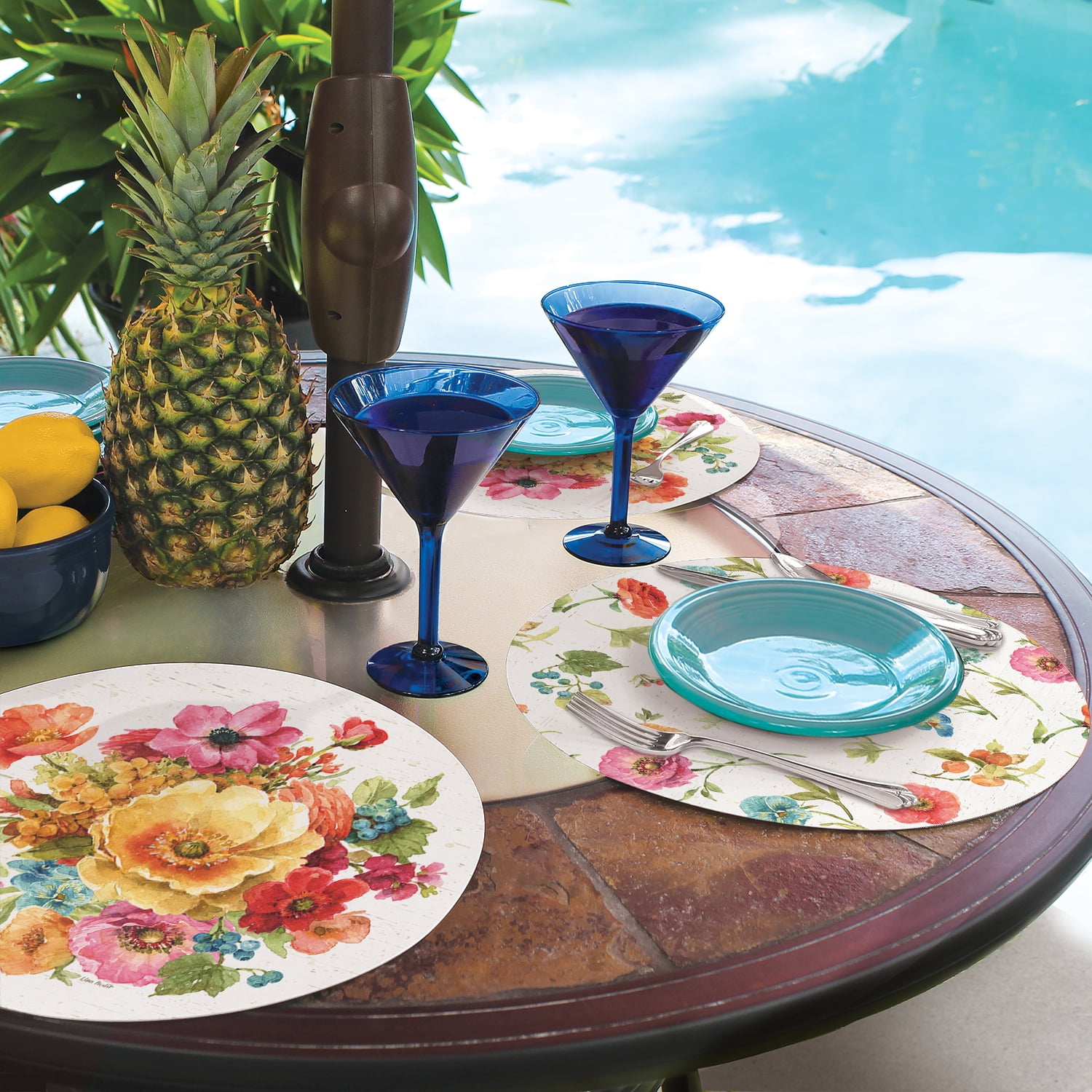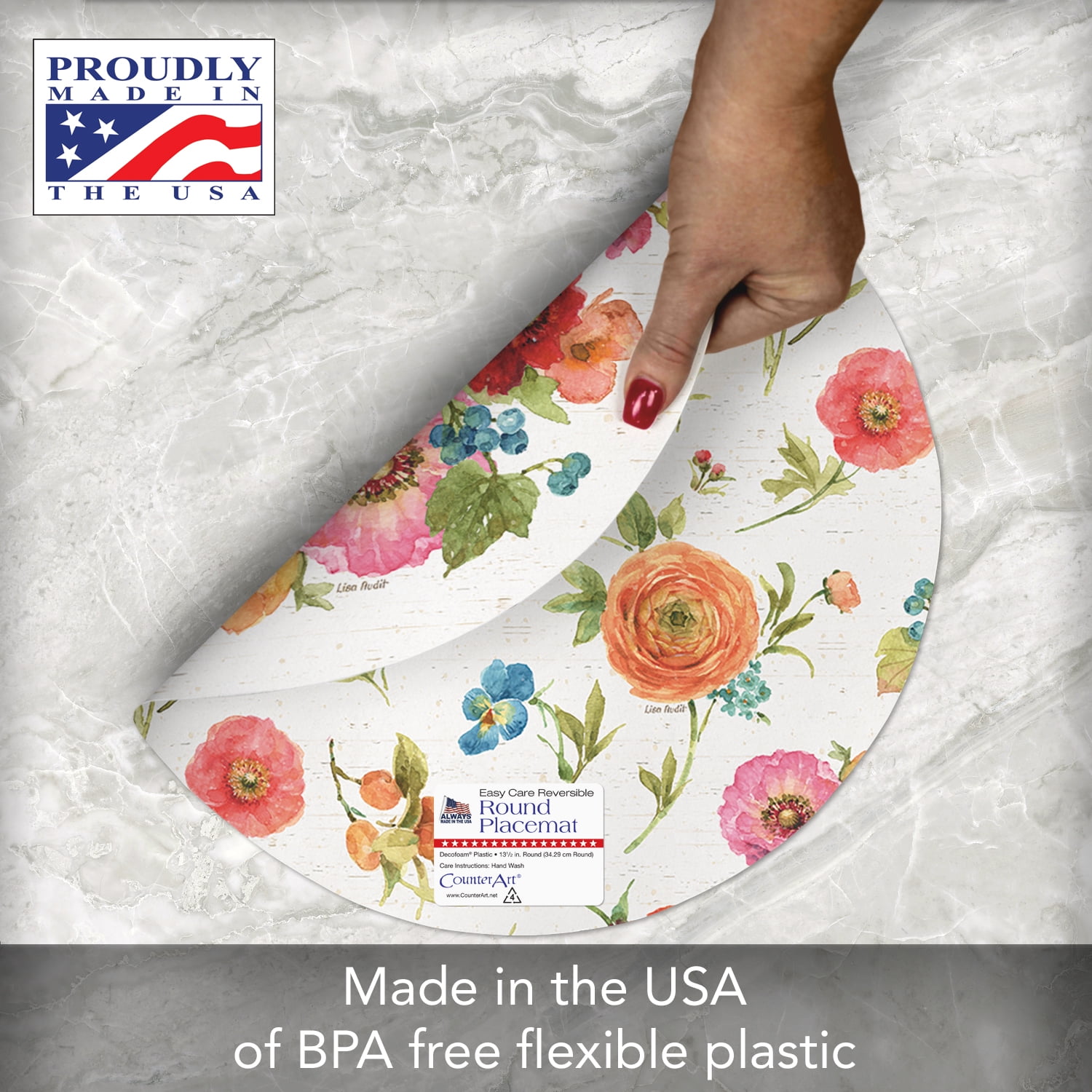 CounterArt ‘Country Fresh’ Reversible Round Easy Care Flexible Plastic Placemat, 4 Pack