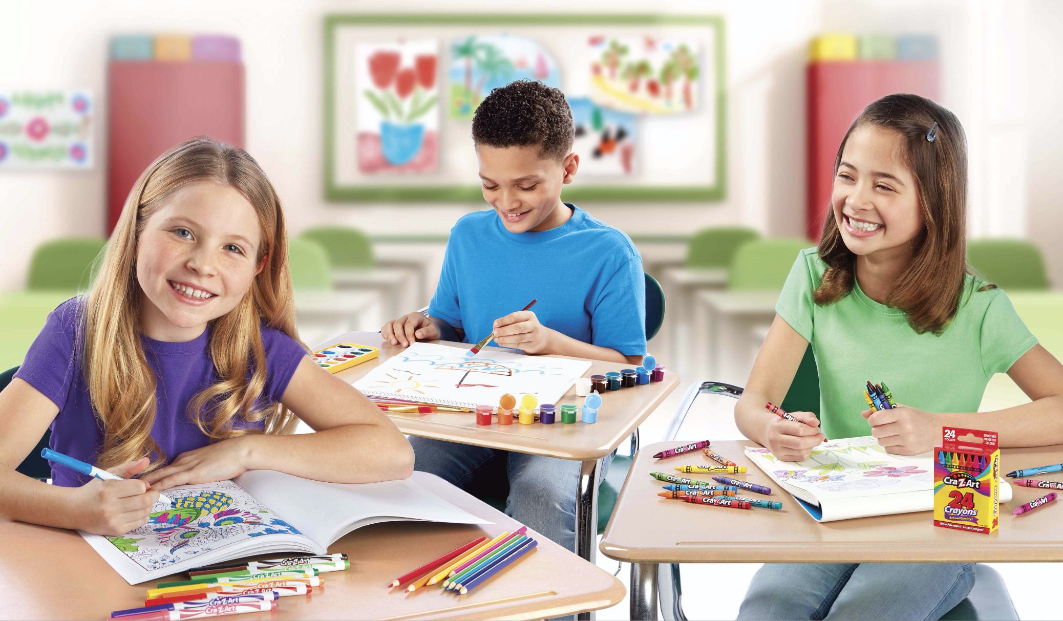The Cra-Z-Art Washable Kids’ Paint is a super value 20-pack! Wide-mouthed 2oz bottles allow for easy access, and they are also resealable for storage and so the paint does not dry out. The classic colors include primary and secondary colors, and are perfect for school projects, signs, banners, display boards, finger and hand painting, and more! All-purpose, water based paints wash easily from skin and most children’s fabrics with soap and water. Have your child mix colors to make their own, multi-color art. Perfect staple to keep on hand for last minute art projects, store in an easel, or for spontaneous paint party fun! Great value for teachers. Safe and nontoxic. For ages 3 and up. Be "always creative" with Cra-Z-Art!