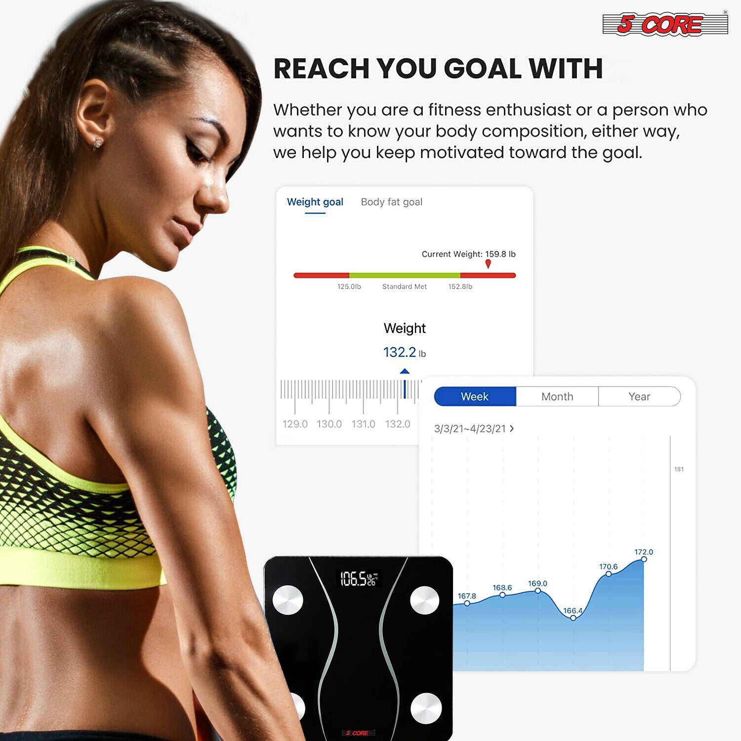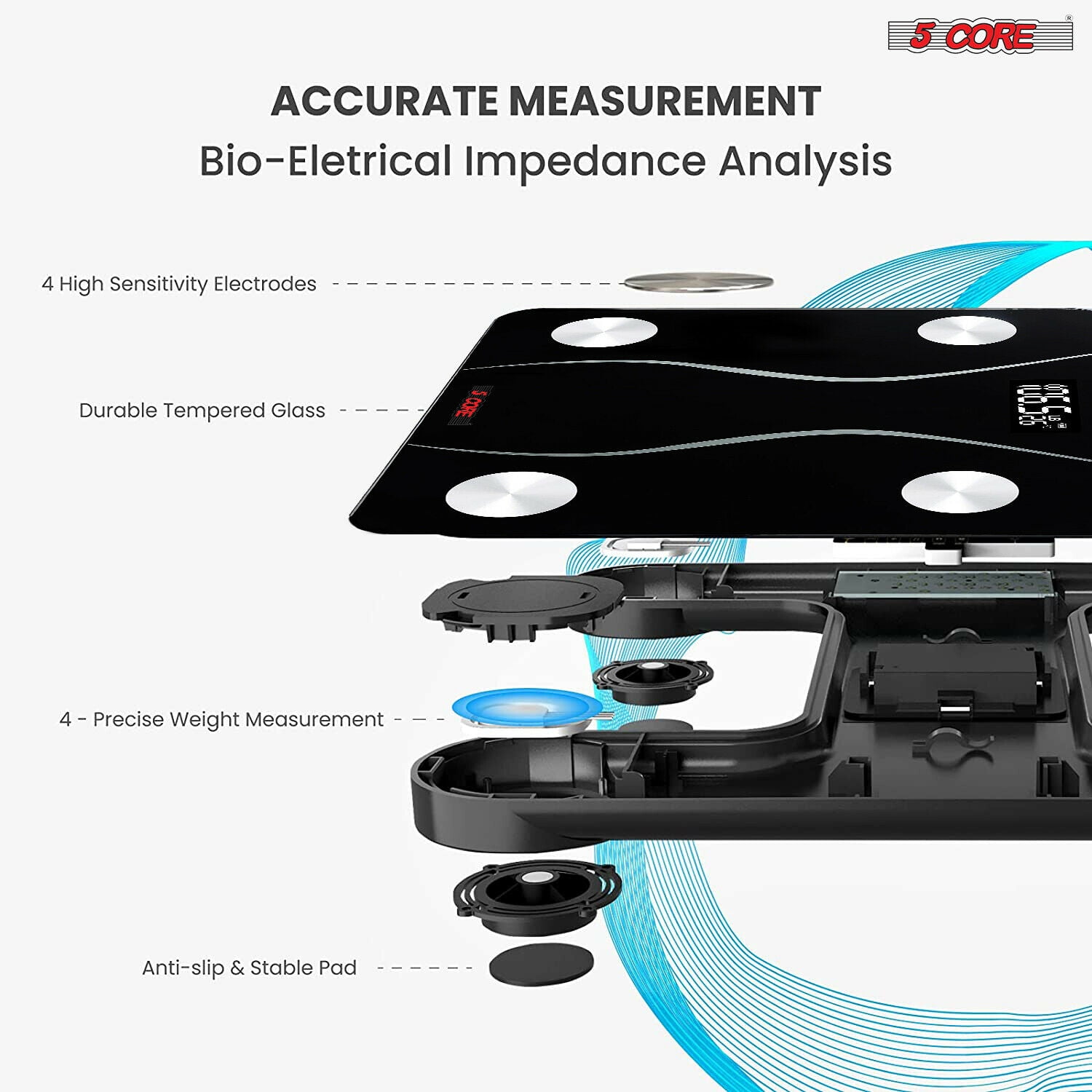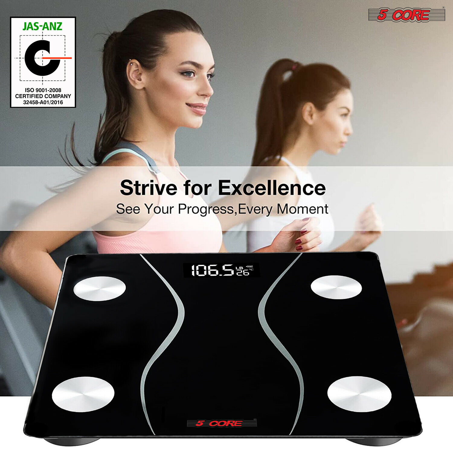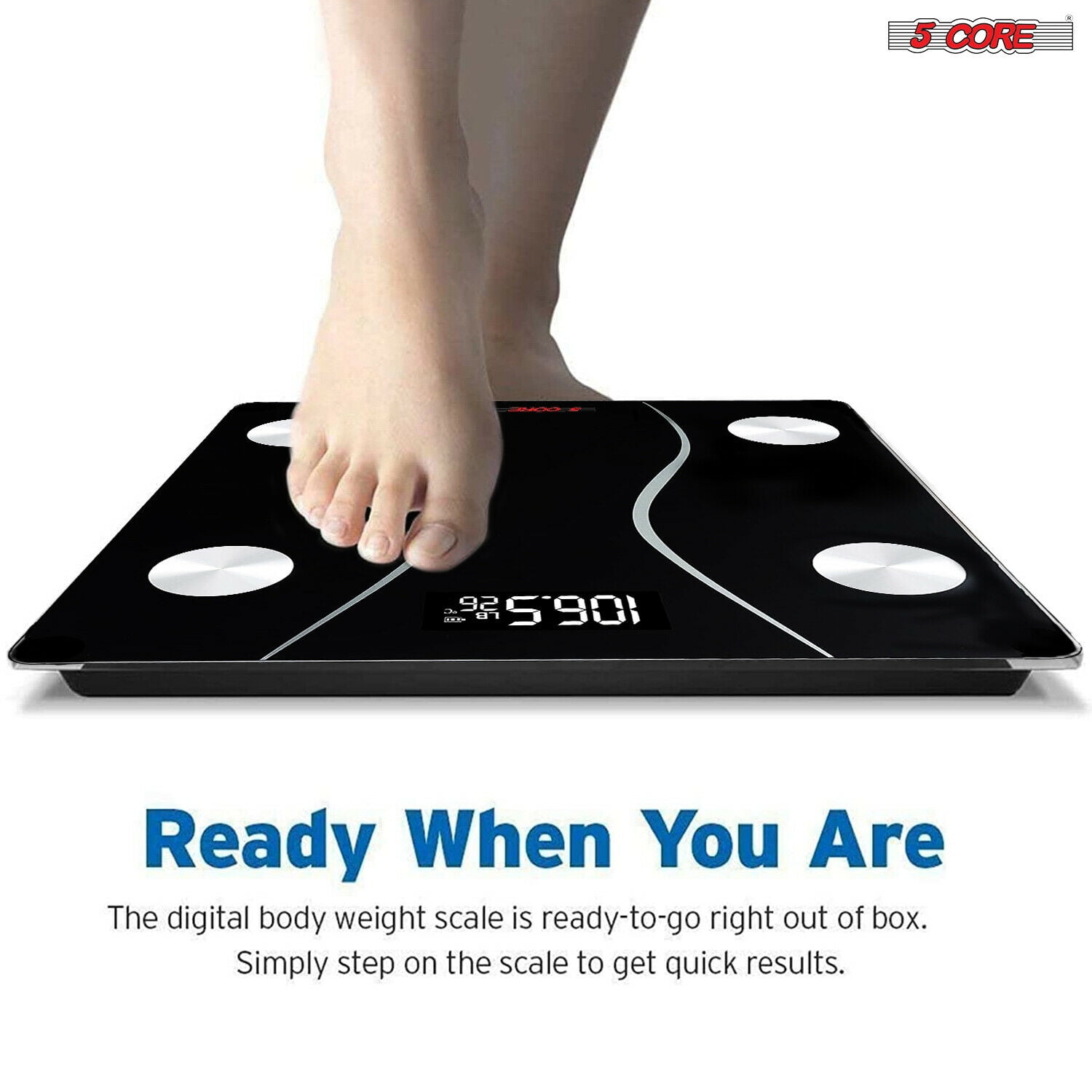 - ✅ ACCURATE & CONSISTENT – 5 Core Bathroom scales for body weight are built in 4 high-precision sensors with auto-calibration and balanced design, which enhance the accuracy that differences within 0.2 lb / 0.1 kg. This body fat scale gives a highly accurate and consistent weight measurement. This Smart Scale is designed to help you towards a healthier lifestyle.