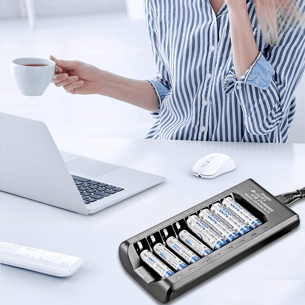 AA AAA batteries charger uses trickle charge to extend battery life and charge up to 99%.