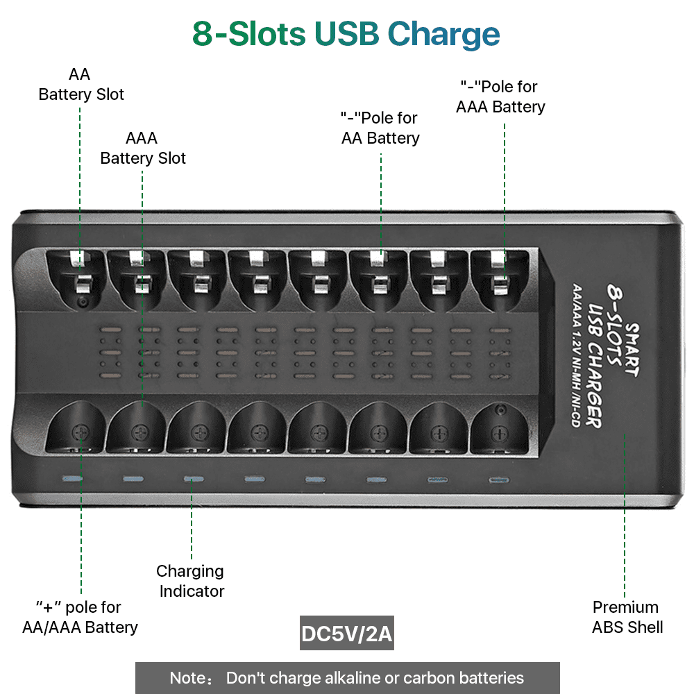 Charge any number of AA AAA rechargeable batteries to make your charging easier.