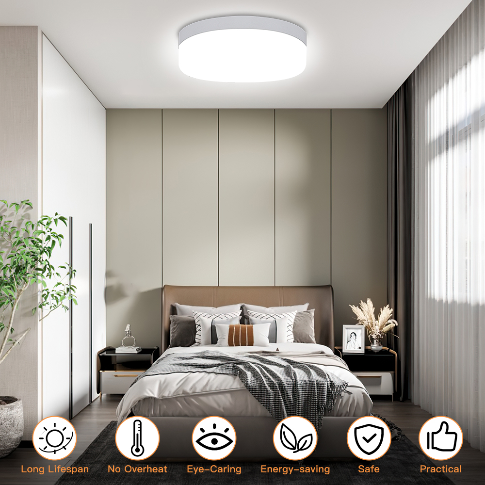 - 【Energy-saving & Eye-protective Design】: Our close to ceiling light fixture adopts high-power 2835 LED chips, which can save energy up to 85% than halogen lamp, AC 110-120V, Over 50,000-hour lifespan; no fading, corrosion resistance, no cracking, take the warm soft attractive fashionable atmosphere to your home. The ceiling led lights to create a very perfect illumination, providing more natural light for your home or office, protecting your eyes.