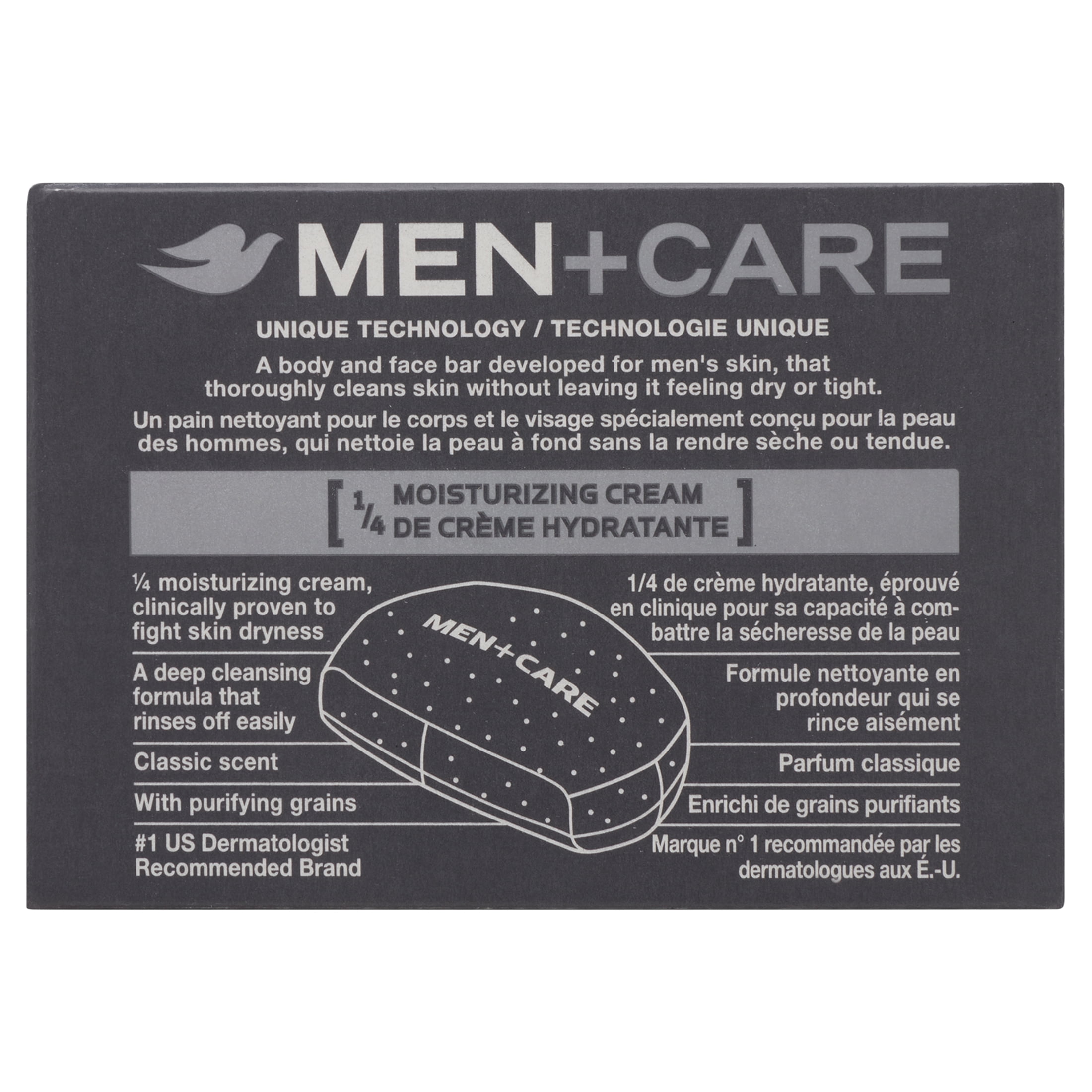- Dove Men+Care Body and Face Bar thoroughly cleanses and hydrates skin for healthier, stronger skin versus regular soap. Deep Clean bar that effectively washes away bacteria, nourishes your skin