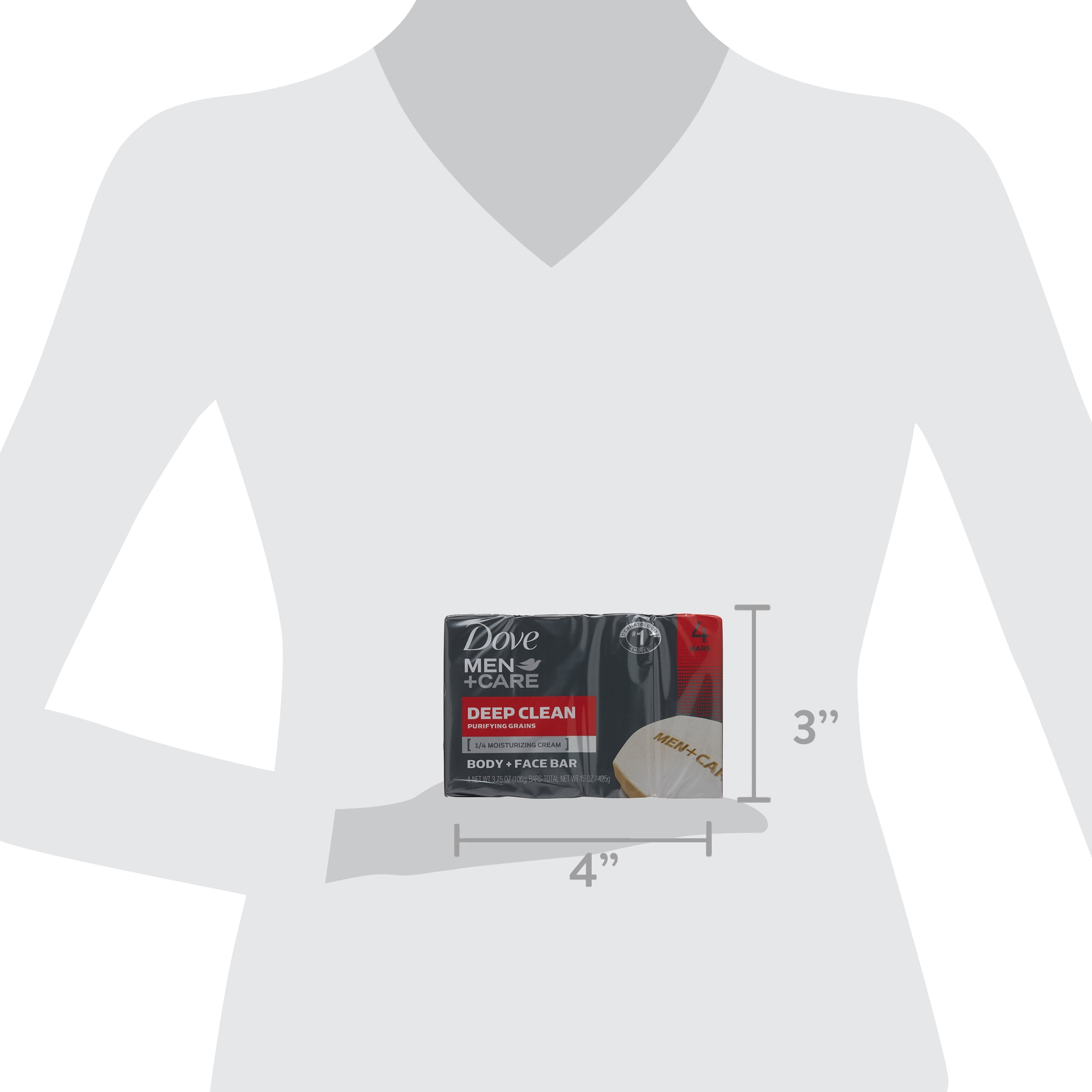 Looking for a bar soap for men that cleanses while also helping protect from dry skin? Dove Men Care Deep Clean Body and Face Bar contains purifying grains and delivers a deep, refreshing clean that leaves skin feeling hydrated and strong. Dove Men Care Body and Face Bar effectively washes away bacteria, nourishes your skin. Body and face soap bar goes beyond just delivering a deep clean: it helps to protect skin from feeling tight and dry with its unique formula made for men’s skin. With ¼, moisturizing cream, the Dove Men+Care Deep Clean Body and Face Bar nourishes for skin that feels healthy and strong. This #1 Dermatologist Recommended body soap and face soap bar helps to maintain skin’s hydration levels and protect skin against dryness. Regular men’s bar soap can often leave skin feeling tight and dry, but Dove Men+Care Deep Clean Body and Face Bar helps maintain skin moisture to provide skin comfort and refreshment. Plus, its formula is non-comedogenic and mild and gentle enough to use on your face. To use Dove Men+Care Deep Clean Body and Face Bar, wet the body bar in the shower and massage into your face and body to create a light foam before rinsing thoroughly. The lather rinses cleanly away without leaving behind a greasy feel. Dove Men+Care Deep Clean Body and Face Bar has a classic scent and is clinically proven to fight skin dryness. This body bar not only cleanses, but also leaves your skin feeling healthy and strong.