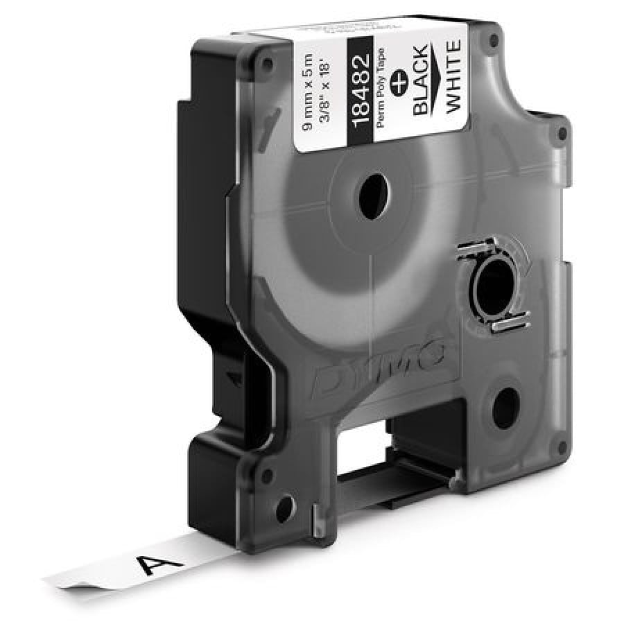 Label Tape, Overall Length 3 1/4 In, Overall Width 3 1/4 In, Overall Height 1 1/4 In, Tape Width 3/8 In, Tape Length 18 Ft, Black on Clear, Perm Poly Material, 2 Max Lines of Print, For Use With G1884696, 5AJ94, 5AJ97, G1921893, G2793621, G0850631, G1812142, G0607521.