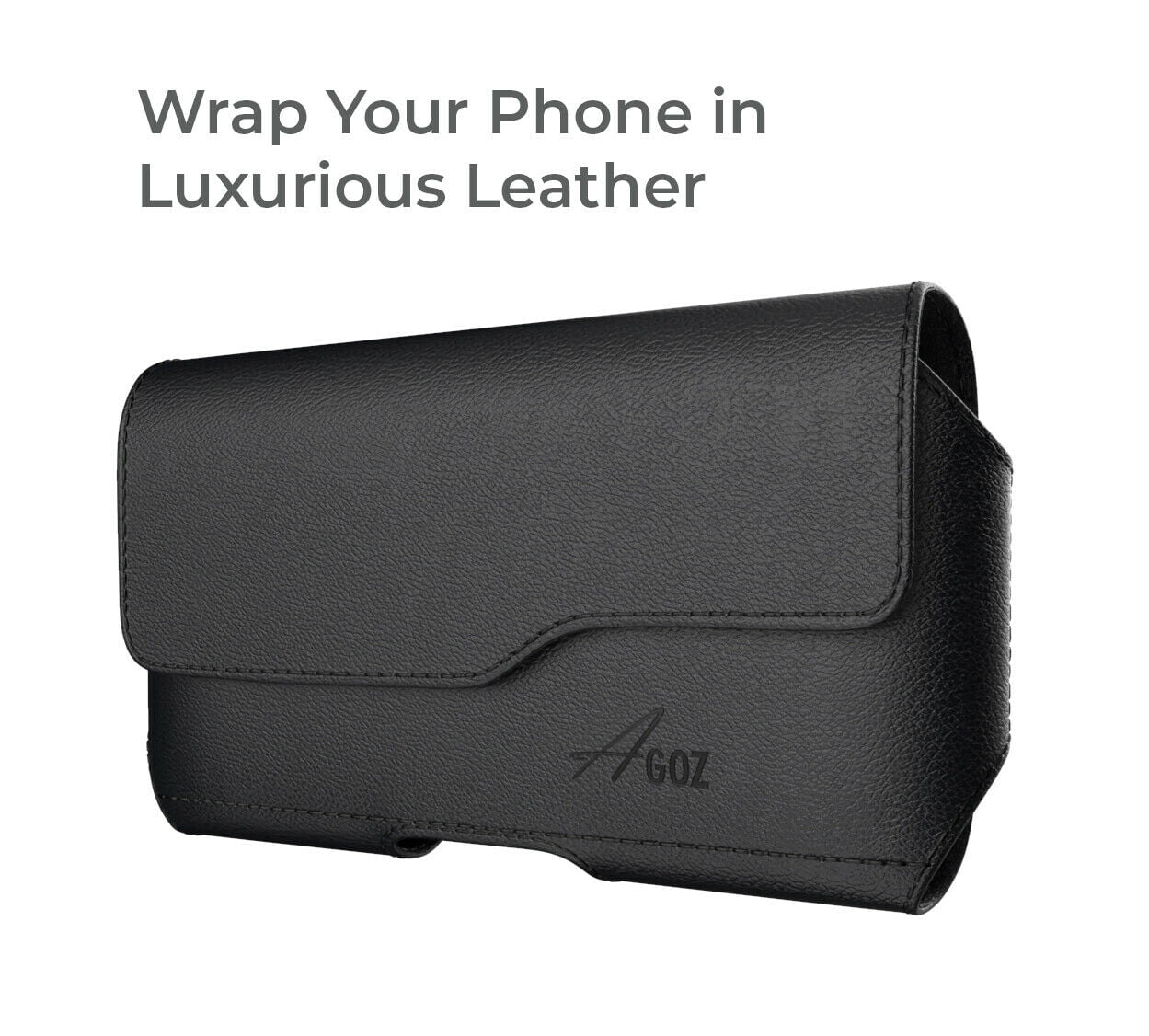 AGOZ Premium Belt Clip Cases are made of high-quality PU leather with a great and stylish look with a soft interior. It has one durable belt clip and two additional secure belt loops with front magnetic closure.