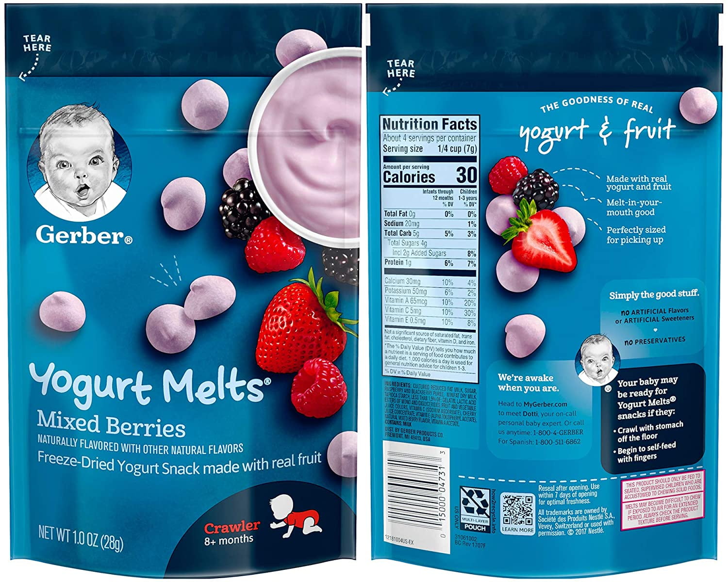 - REAL FRUIT & YOGURT: Nourish your little one with the goodness of our Yogurt Melts Freeze-Dried Yogurt & Fruit Snacks. These snacks are made with real fruit & perfectly sized for tiny hands.