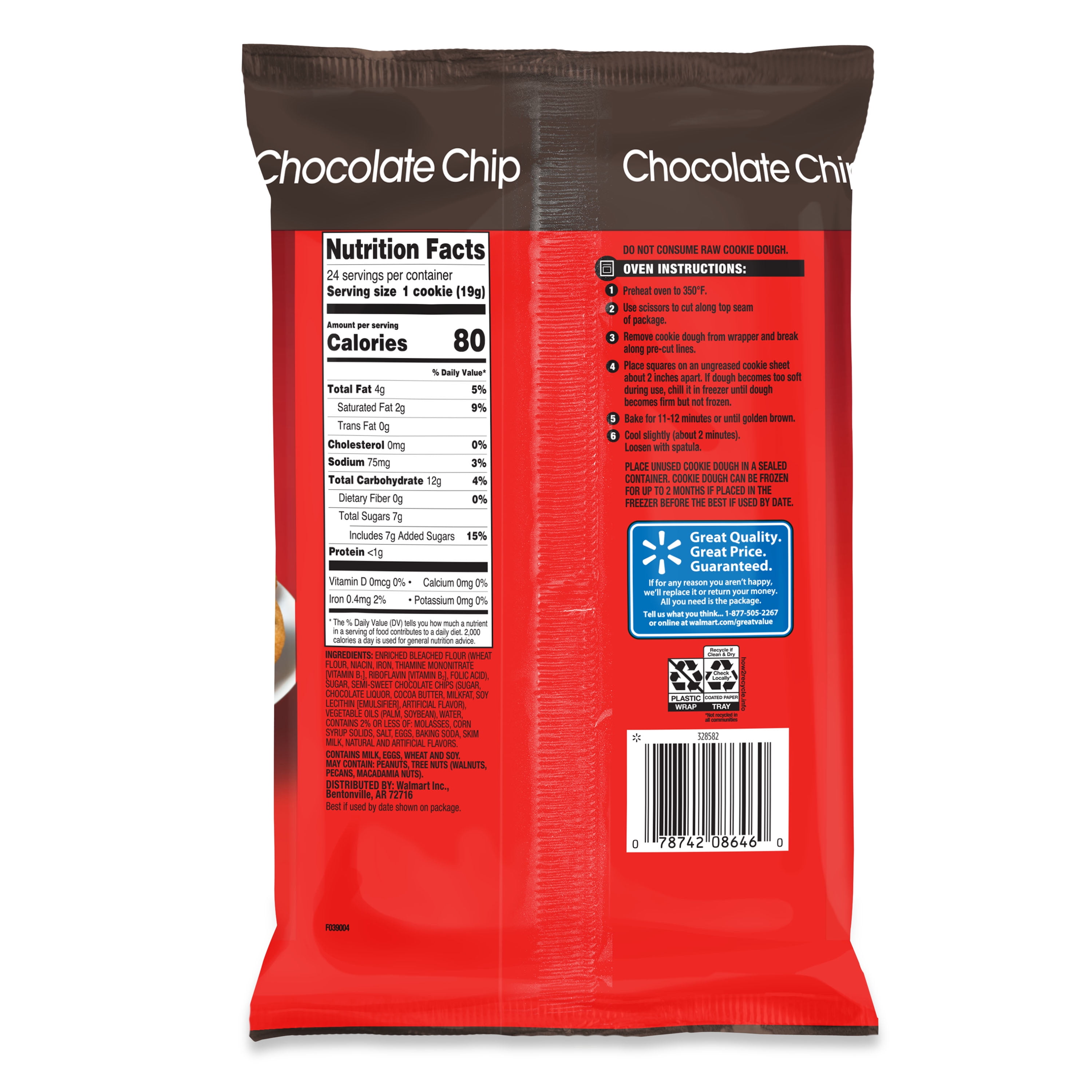 Great Value Ready to Bake Chocolate Chip Cookie Dough, 16.5 oz