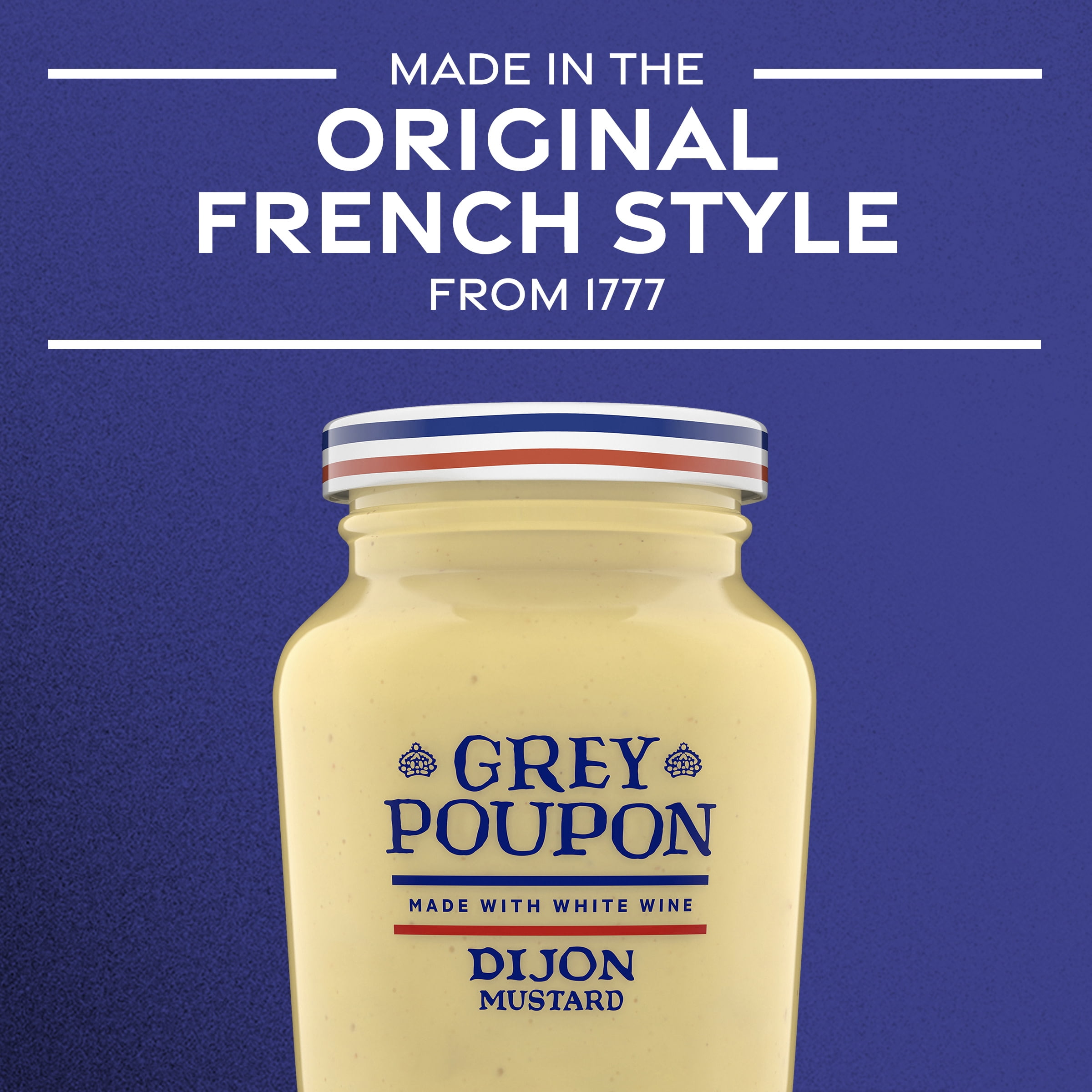 - Made from the same French-style recipe since 1777, Grey Poupon Dijon Mustard uses the finest ingredients for a quality, gourmet condiment