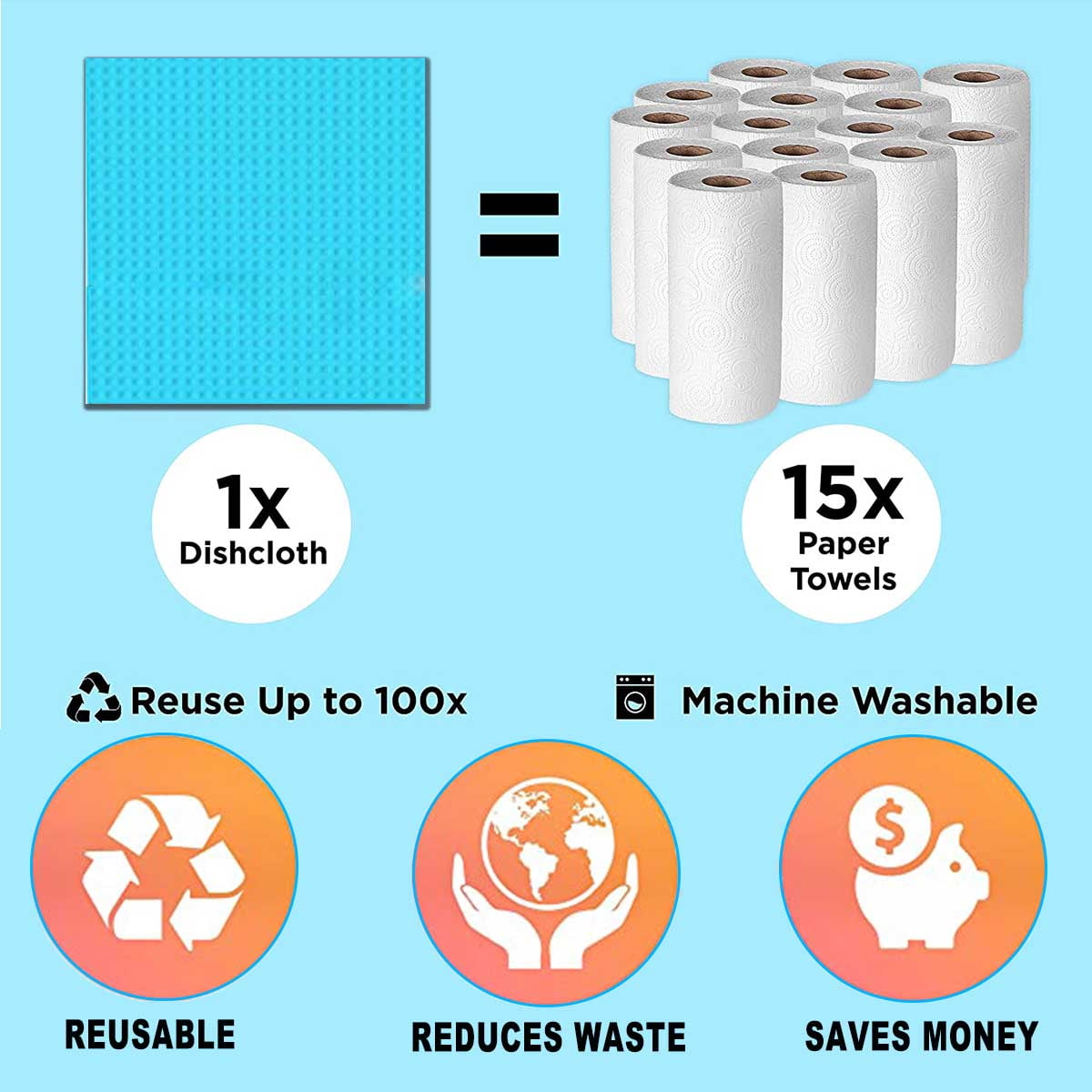 > Reusable, 1 dishcloth can replace over 15 rolls of paper towels. The dish cloths can be used over and over again, help save your money.
