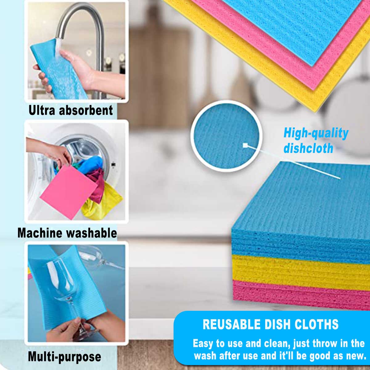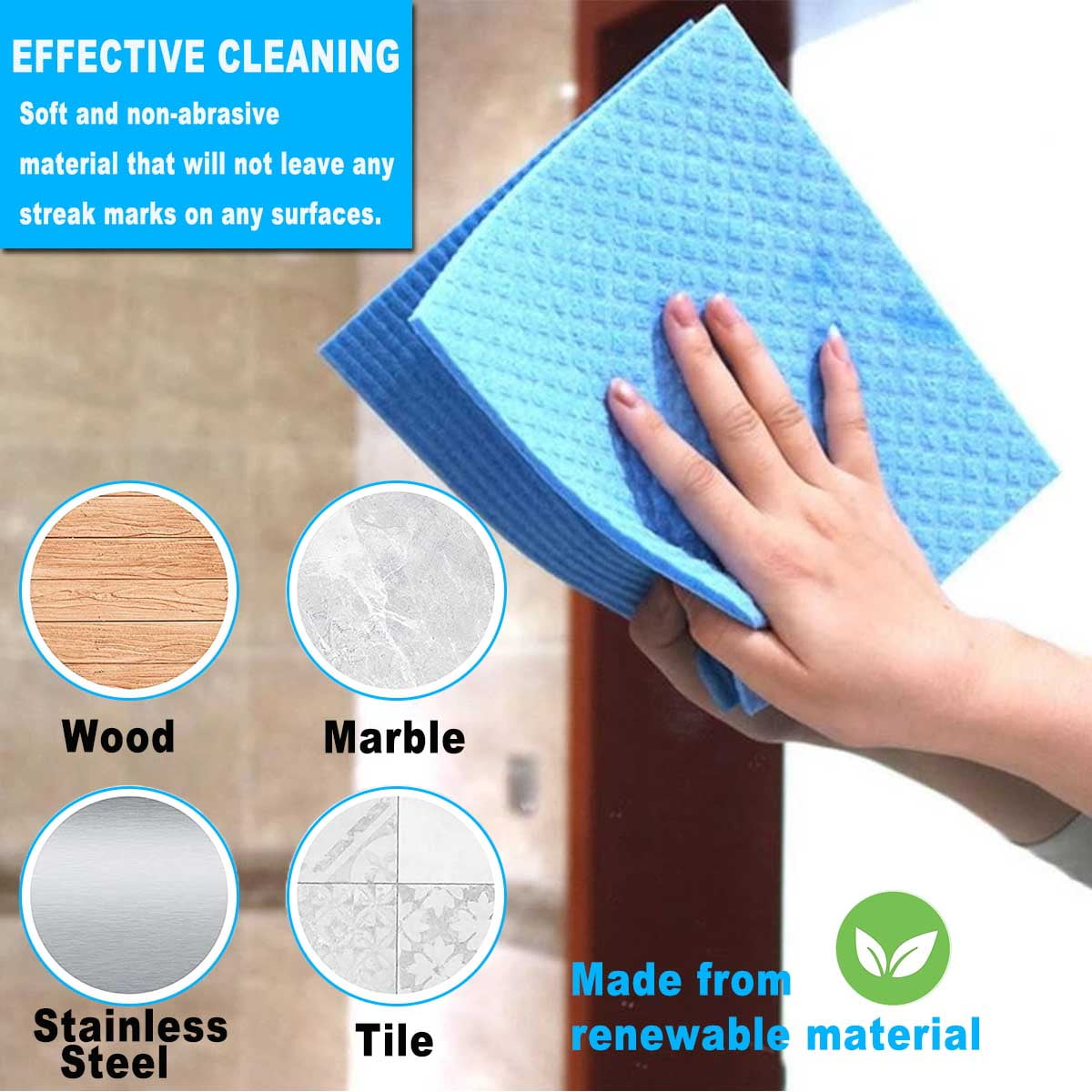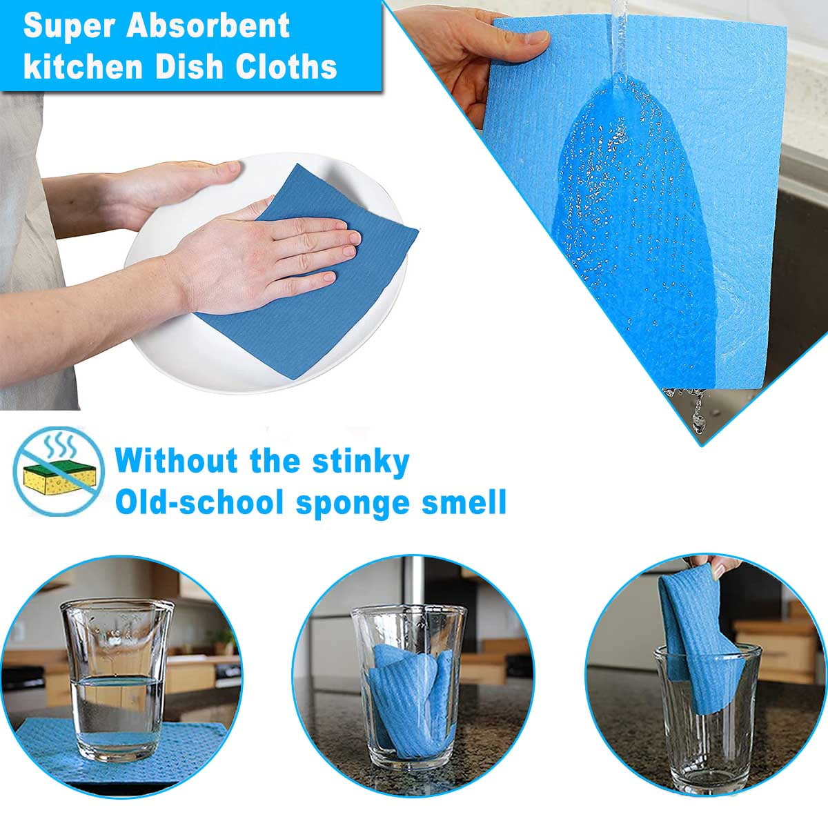 - 【Durable】These sponge cloths made from biodegradable cellulose and cotton, so not only are they more absorbent but also last longer than your average dishcloth. Swedish dishcloths are hypoallergenic, so they are gentle on the skin and won’t dry to be harsh and brittle.