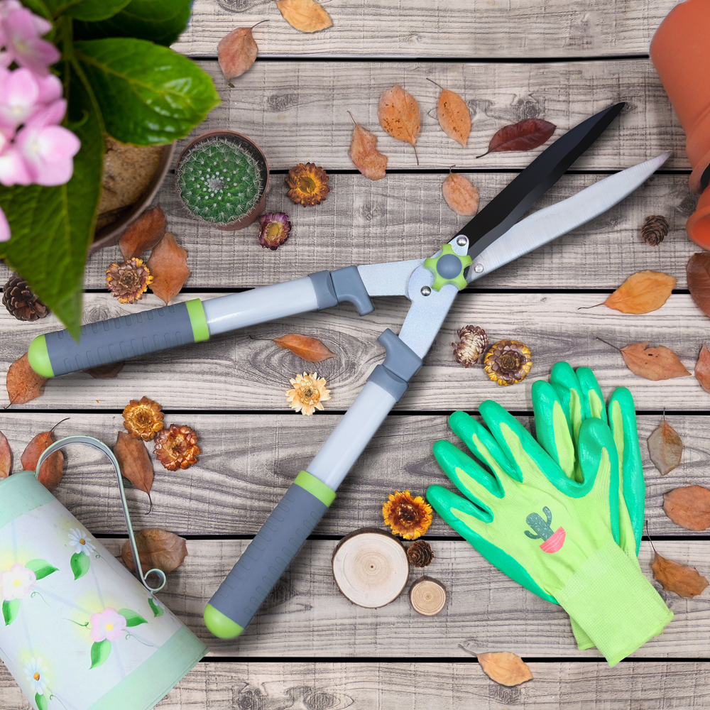This hedge shears is the ideal tool for trimming and shaping your shrubs and decorative plants.