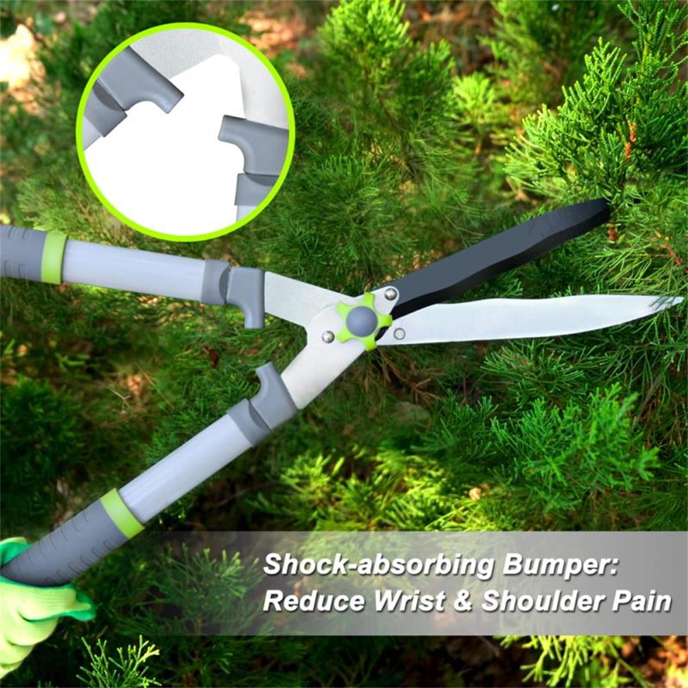 - MAJOR ADVANTAGES OF HEDGE CLIPPERS: The blades made of forged carbon steel which is strong and durable, which makes cut smoothly and easily, keep the twigs from slipping off. The hedge shears have an adjustable control knob so the blades can be adjusted for cutting especially dense leaves.