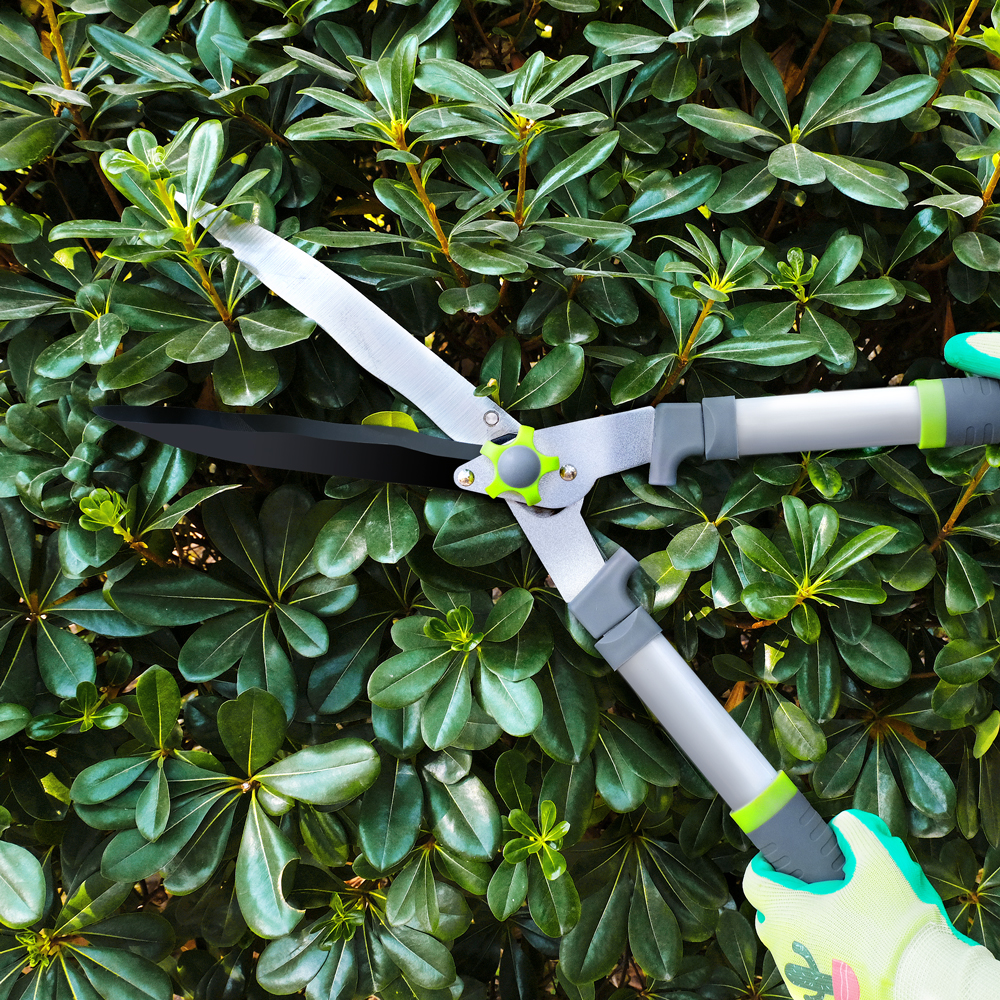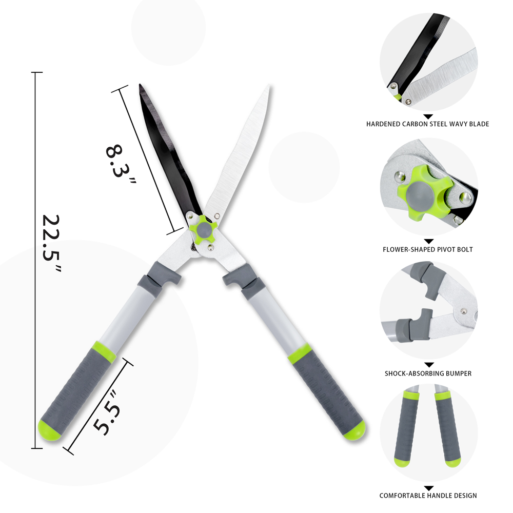 - THE LATEST HEDGE SHEARS: This hedge shears is 23.6" in length, 3 lbs in weight. It is lightweight, sharp, durable, brings clean smooth cut. Every cut will be a joyful experience and your shrubs will grow back nicely. Ideal for shaping and manicuring boxwood, hedges, shrubs and decorative topiary plants.