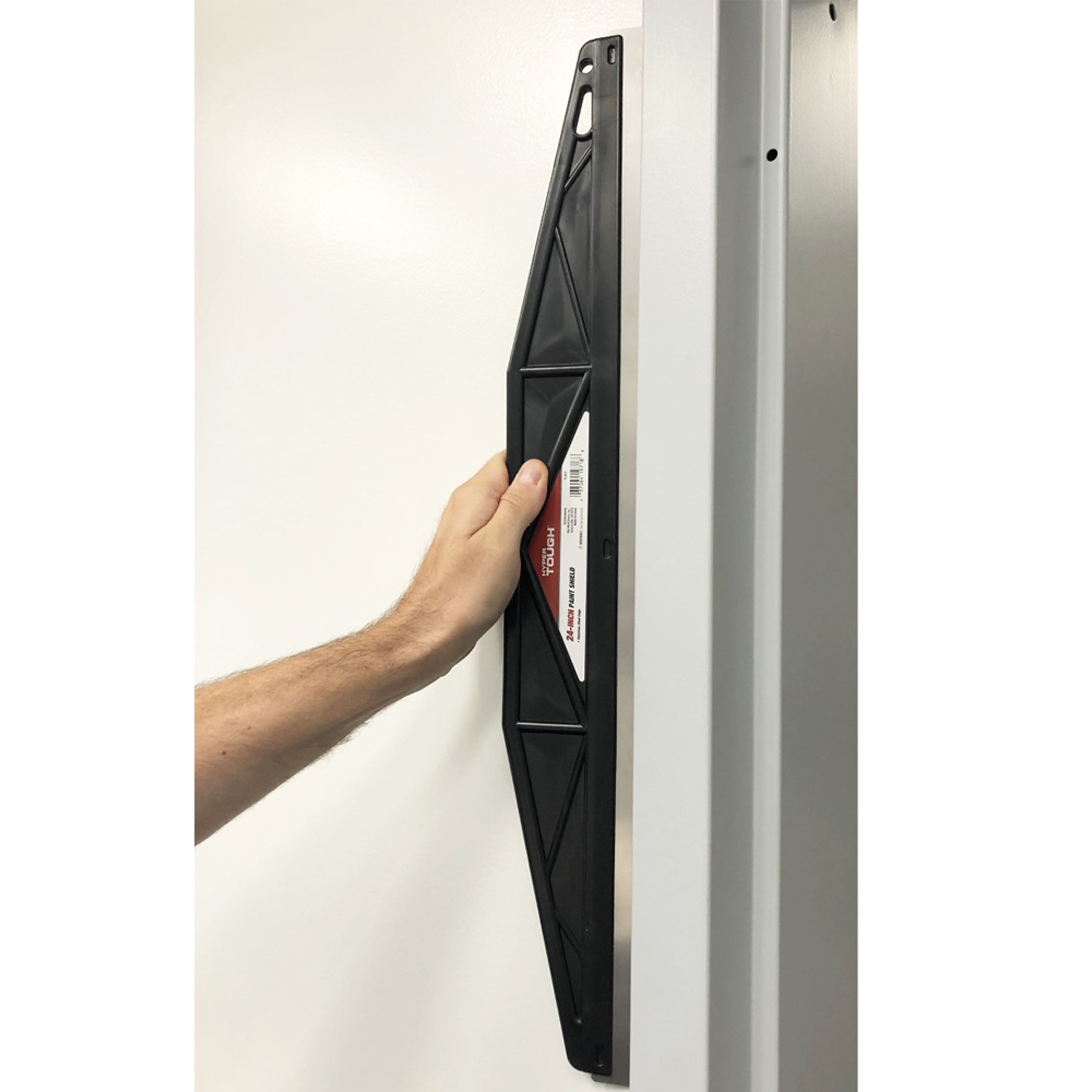 The Hyper Tough 24" Paint Shield provides a straight edge for clean paint trimming to protect molding, ceilings, glass, corners and non-painted surfaces from spatter and over-painting. It features an easy to clean 24-inch, stainless steel edge. The edge is sonically welded to the handle for a secure, strong fit and will not rust or corrode. The durable paint shield is heavier than most trim guides, providing a more professional performance during use. Use the paint shield for windows, cabinets, ceilings, corners, and other areas where a flat edge is to be painted to protect adjoining walls, woodwork and other non-painted surfaces from spatter. The solid polystyrene body holds up to temperature variations and will not bend. No matter the angle or how firmly the paint shield is held against the surface, it will provide a sharp, clean edge. With this paint shield, you can reduce use of painter’s tape on the job.Hyper Tough 24" Stainless Steel Edge Paint Shield: