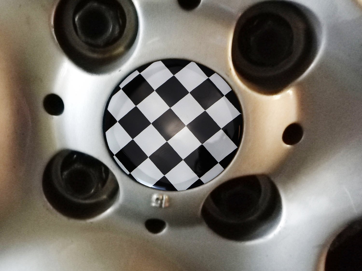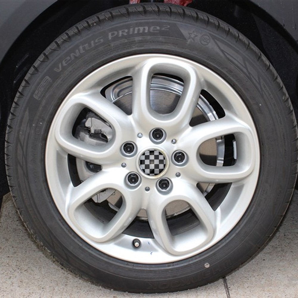 - 4 pieces of black/white checker pattern wheel center cap covers compatible with MINI Coopers (2" diameter)
