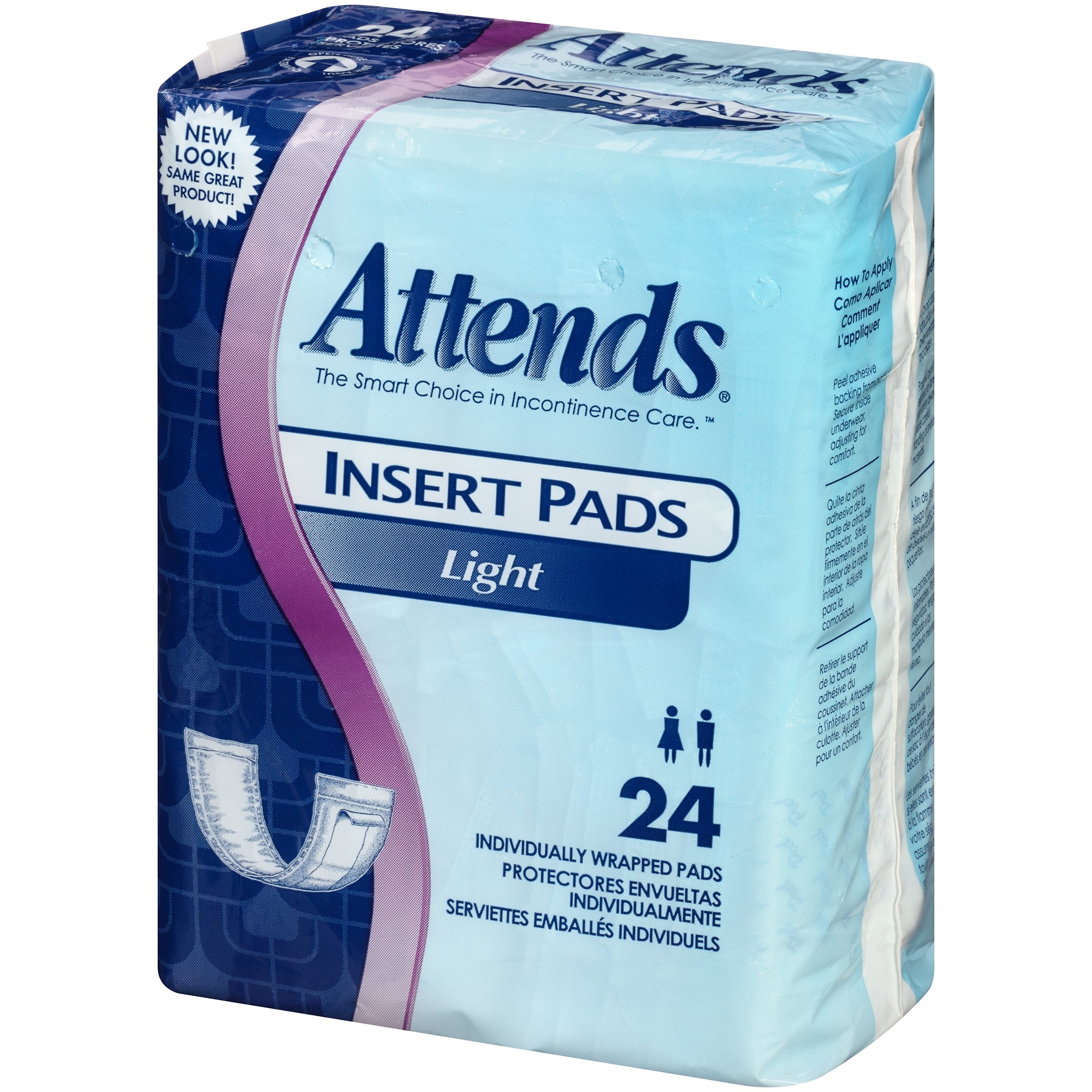 Unlike briefs and protective underwear, Attends® Pads are designed without side panels for maximum mobility and easy changing. They come in a variety of shapes and styles to address a wide range of needs.Our standard use pads range from the bladder control pad, offering an extra measure of security for occasional leaks, to the extended wear shaped pad, offering the greatest protection for severe incontinence. Our special use products include guards that are anatomically designed just for men, booster pads to use in combination with other absorbent products, and stretch mesh pants to hold pads firmly in place. Regardless of your lifestyle and incontinence level, Attends makes a comfortable, absorbent pad that is perfect for your needs. Attends Light Insert Pads® are primarily for use by women during an acute medical need such as surgery, post partum, and OB/GYN care.