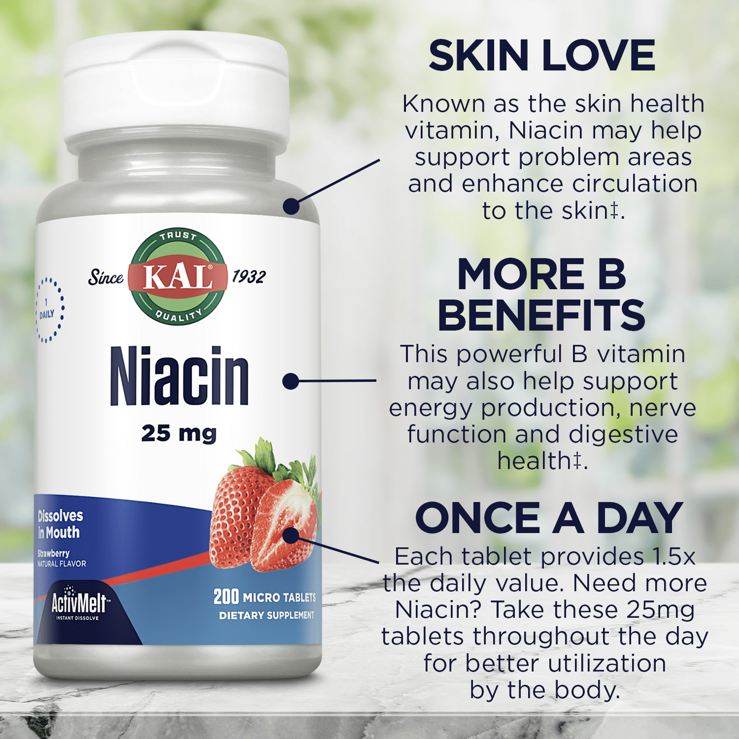 Kal – Niacin ActivMelt Strawberry 25 mg. – 200 Tablets: