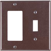 Leviton Combination Wallplates come in a variety of configurations and gangs, and are available in a broad selection of materials including, aluminum, brass, stainless steel and plastic, and in an assortment of colors. If you have a unique application, Leviton can also customize a wallplate for a specific job. 2-Gang 1-Toggle 1-Decora/GFCI Device Combination Wallplate, Standard Size, Thermoset, Device Mount, Brown. Decora is a registered trademark of Leviton Mfg. Co., Inc.