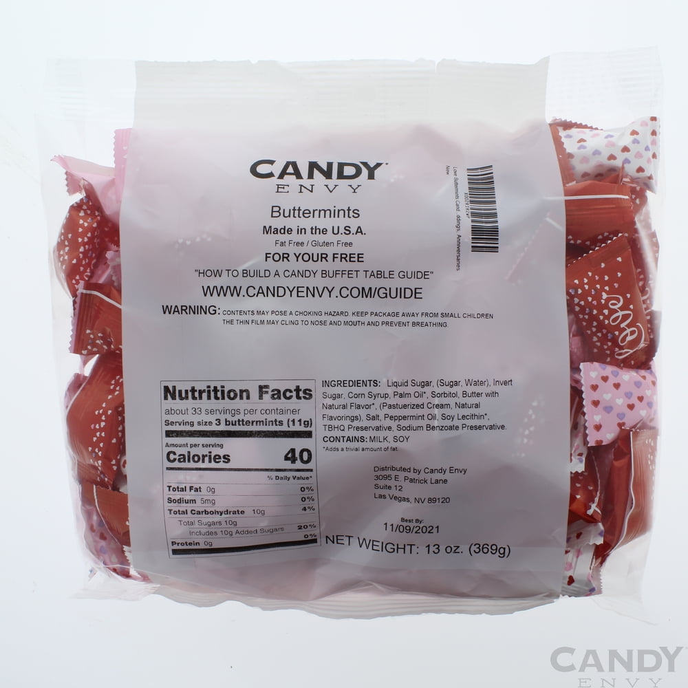 SOFT BUTTERMINTS IN HEART WRAPPERS – Great gift for those that mean the most to you! Share with your loved ones on Valentine’s Day, Birthdays, Anniversaries, or any occasion to spread the love!Love Buttermints Candy – Approximately 100 Buttermints – 13 Ounce Bag – Individually Wrapped, great for Valentine’s Day, Weddings, Anniversaries