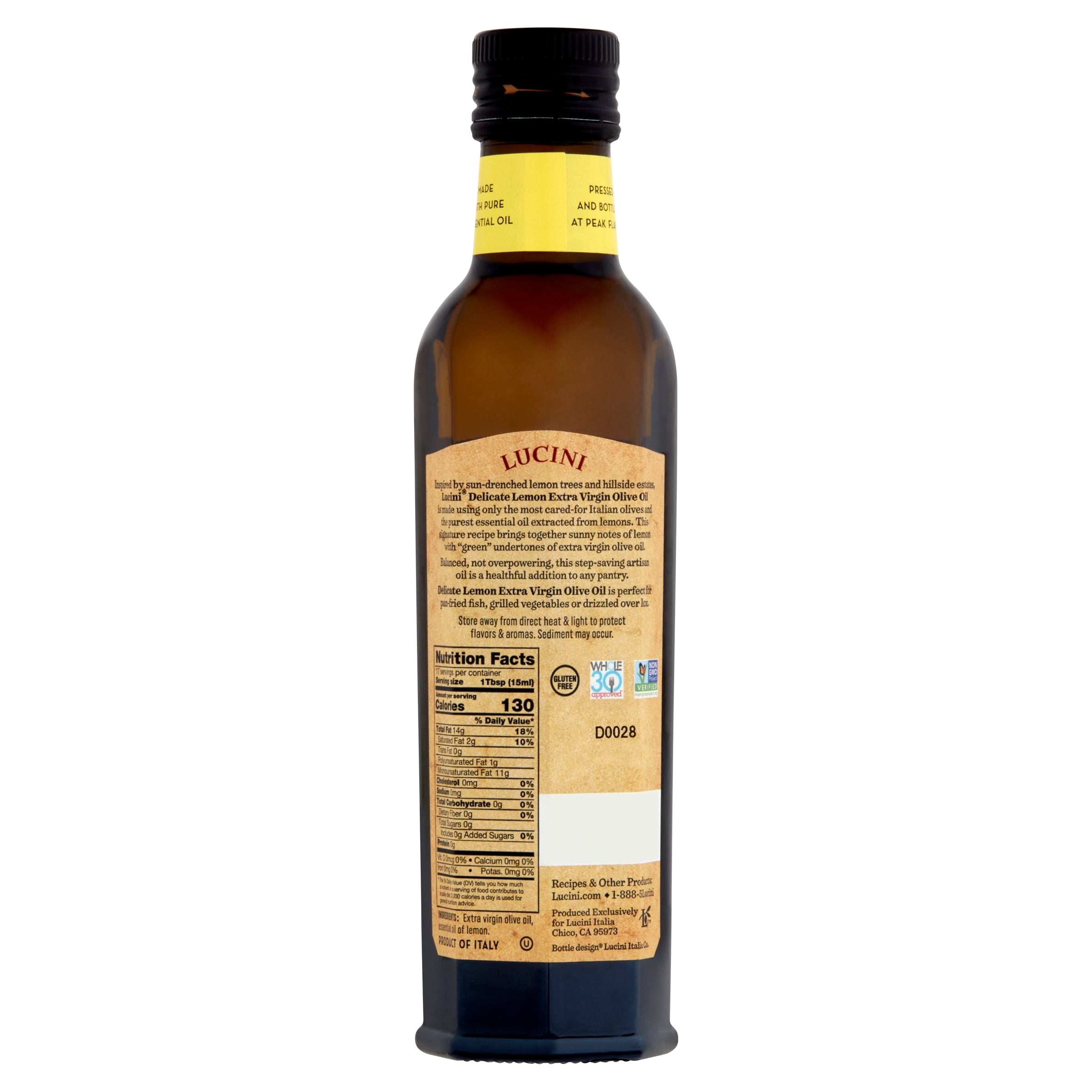 Inspired by sun-drenched lemon trees and hillside estates, Lucini® Delicate Lemon Extra Virgin Olive Oil is made using only the most cared-for Italian olives and the purest essential oil extracted from lemons. This signature recipe brings together sunny notes of lemon with "green" undertones of extra virgin olive oil.