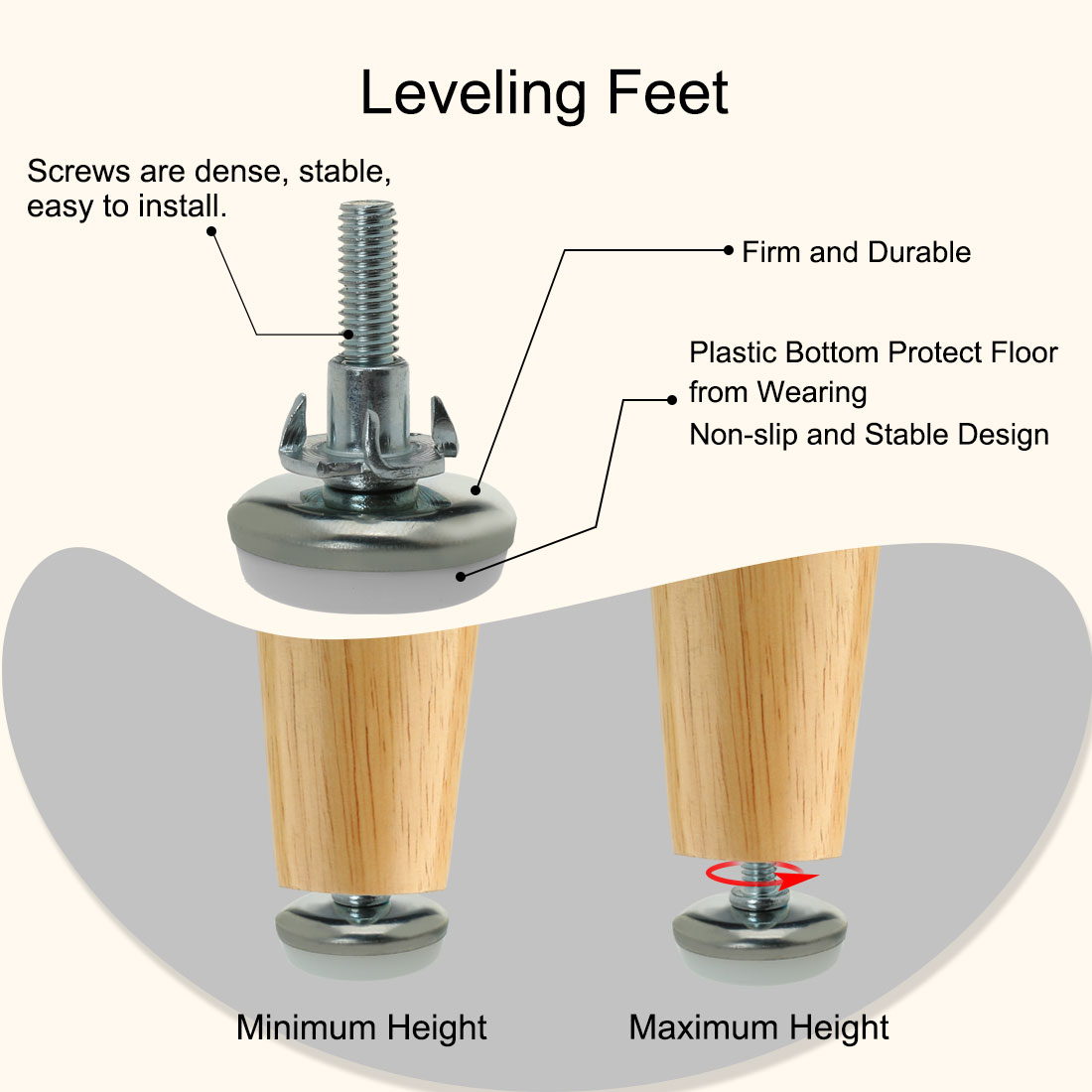M6 x 20 x 30mm Leveling Feet Adjustable Leveler for Furniture Table Leg 16pcs