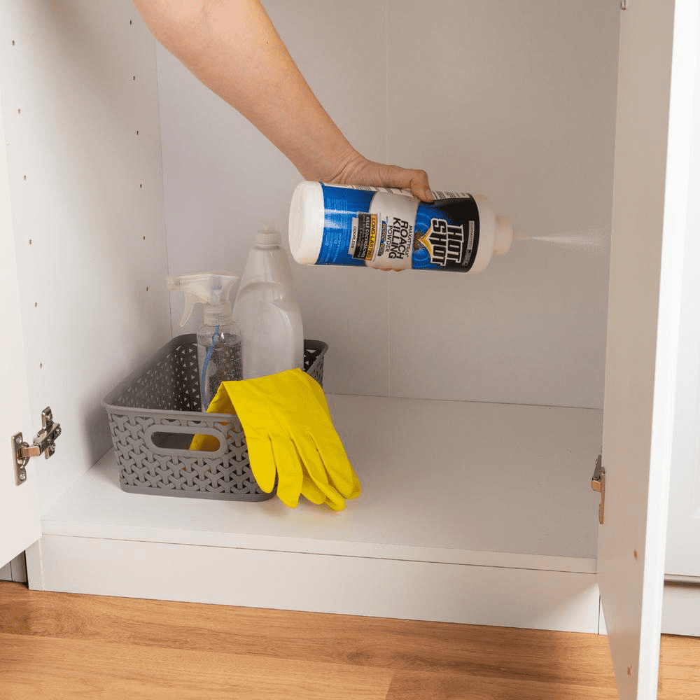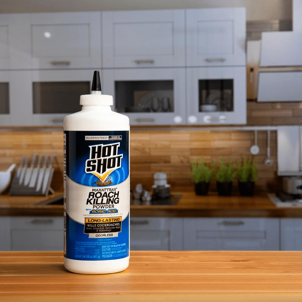 Hot Shot MaxAttrax Roach Killing Powder With Boric Acid2. This long-lasting, odorless powder kills cockroaches, ants, silverfish, palmetto bugs and waterbus. Using the easy applicator, create a barrier of powder through which cockroaches and other insects must crawl.