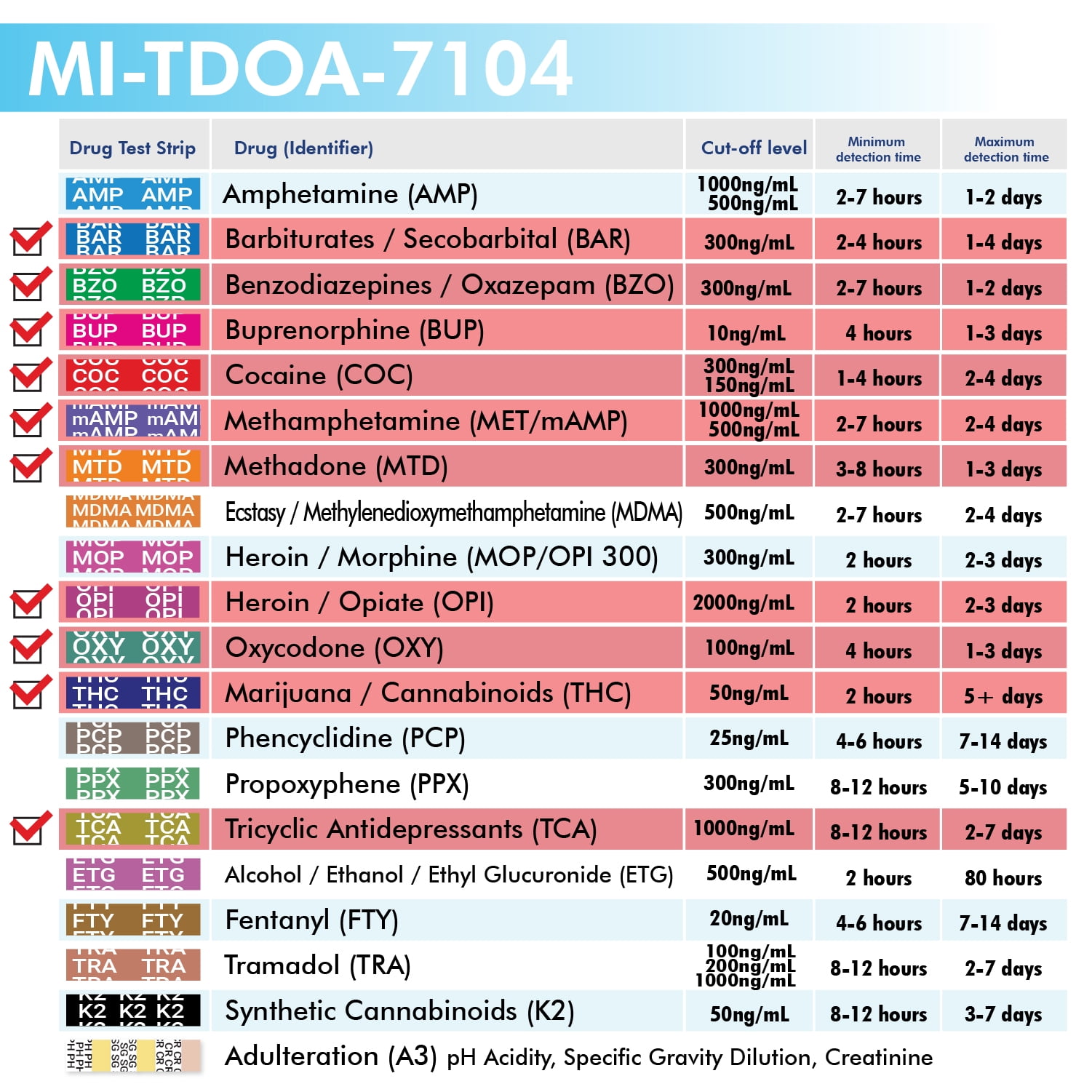 - [Order Options] MiCare T-Cup comes in other combinations of drug tests for different needs. Each T-Cup can test up to 14 drugs types at once, with additional adulterant detection available. MiCare T-Cup are available in several multipack options, save more by purchasing a larger bundle. Feel Free to review our product options and make the purchase most suitable to your needs.