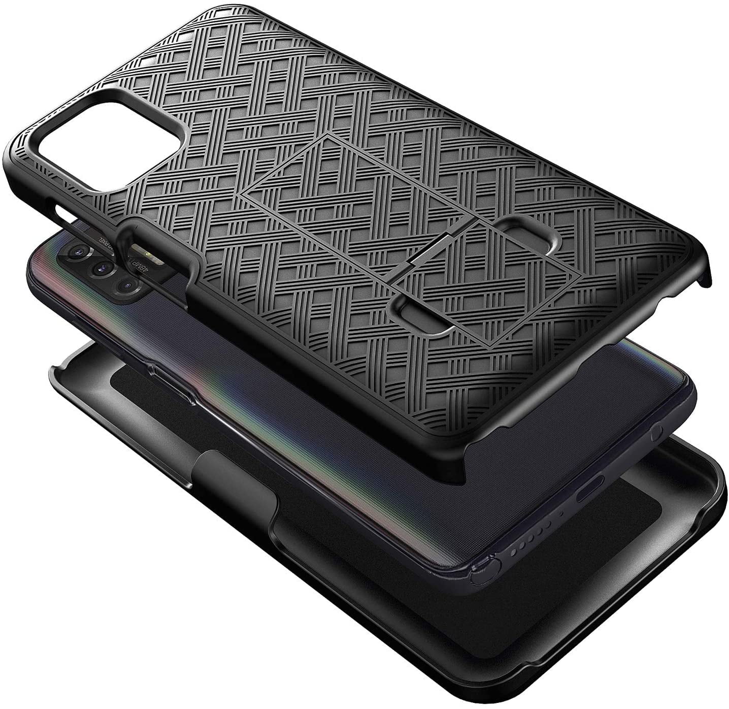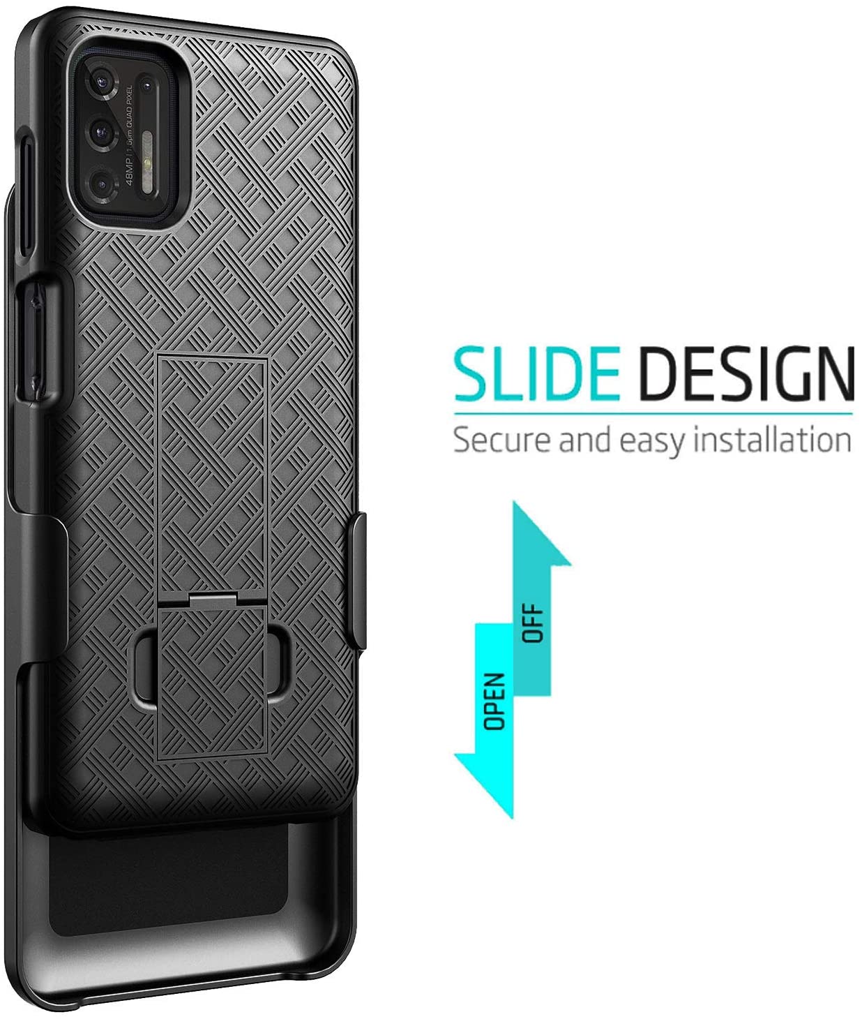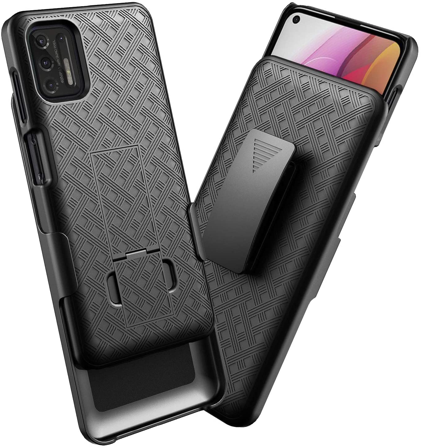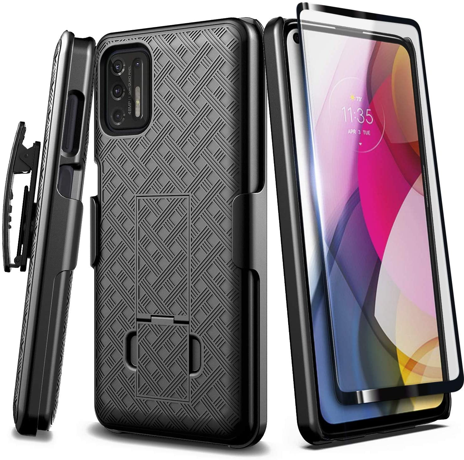 Nagebee Case for Motorola Moto G Stylus 2021 with Tempered Glass Screen Protector (Full Coverage), Armor Defender [Swivel Belt Clip Holster] [Built-In Kickstand] Shockproof Rugged Cover (Shell Black)