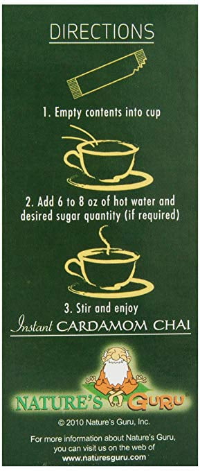 Nature’s Guru Instant Cardamom Chai Tea Drink Mix, Un-Sweetened, 10 Count Single Serve On-the-Go Drink Packets.