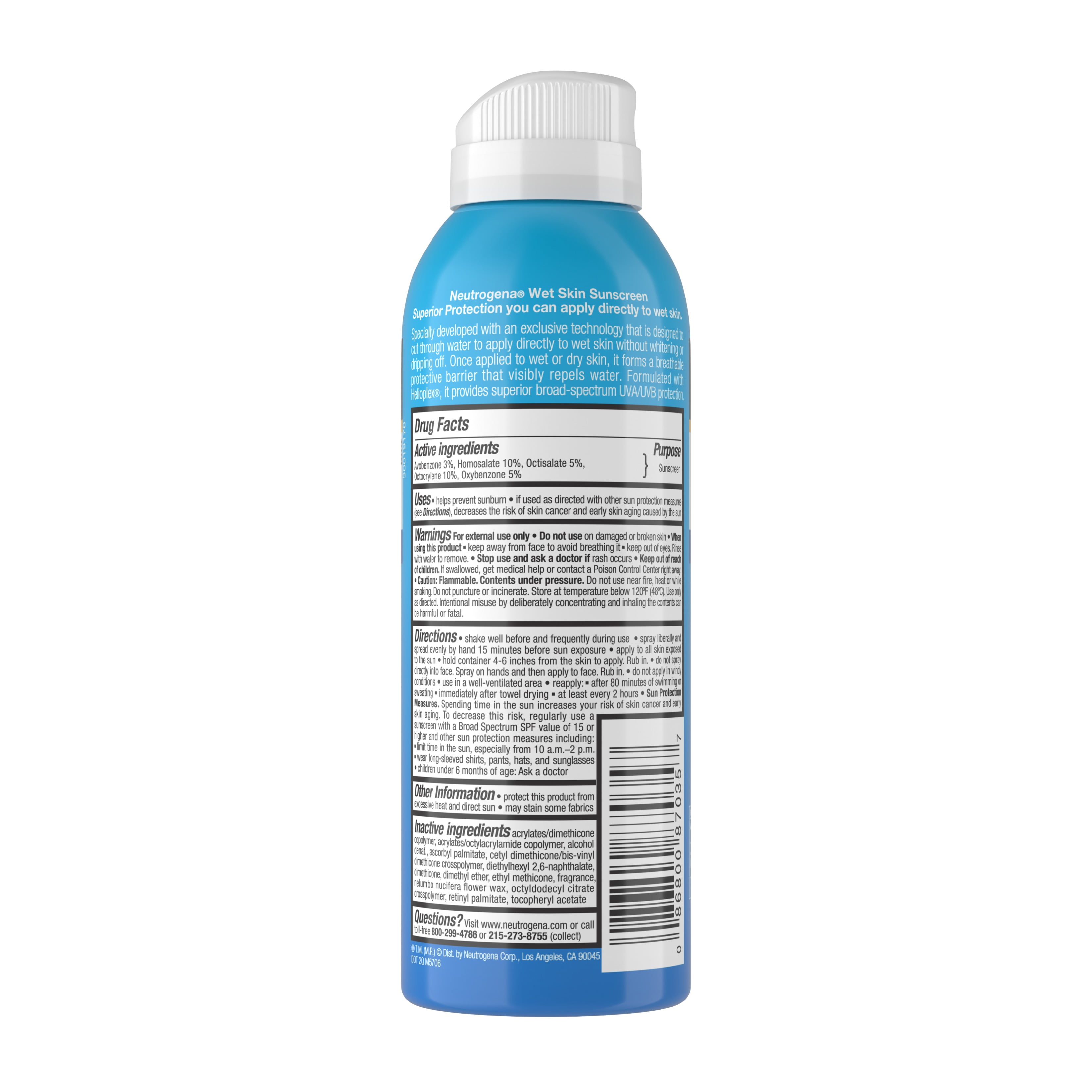Protecting skin from sun damage at the pool, beach, or in humid climates is easy with Neutrogena Wet Skin Sunscreen Spray with Broad Spectrum SPF 50. This convenient spray-on sunscreen cuts through water and applies directly to wet skin. On wet or dry skin, it forms a breathable protection to visibly repel water. This sunscreen is formulated with Helioplex Technology, which offers superior broad spectrum protection from aging UVA rays and burning UVB rays. This sunscreen spray is oil-free and PABA-free.