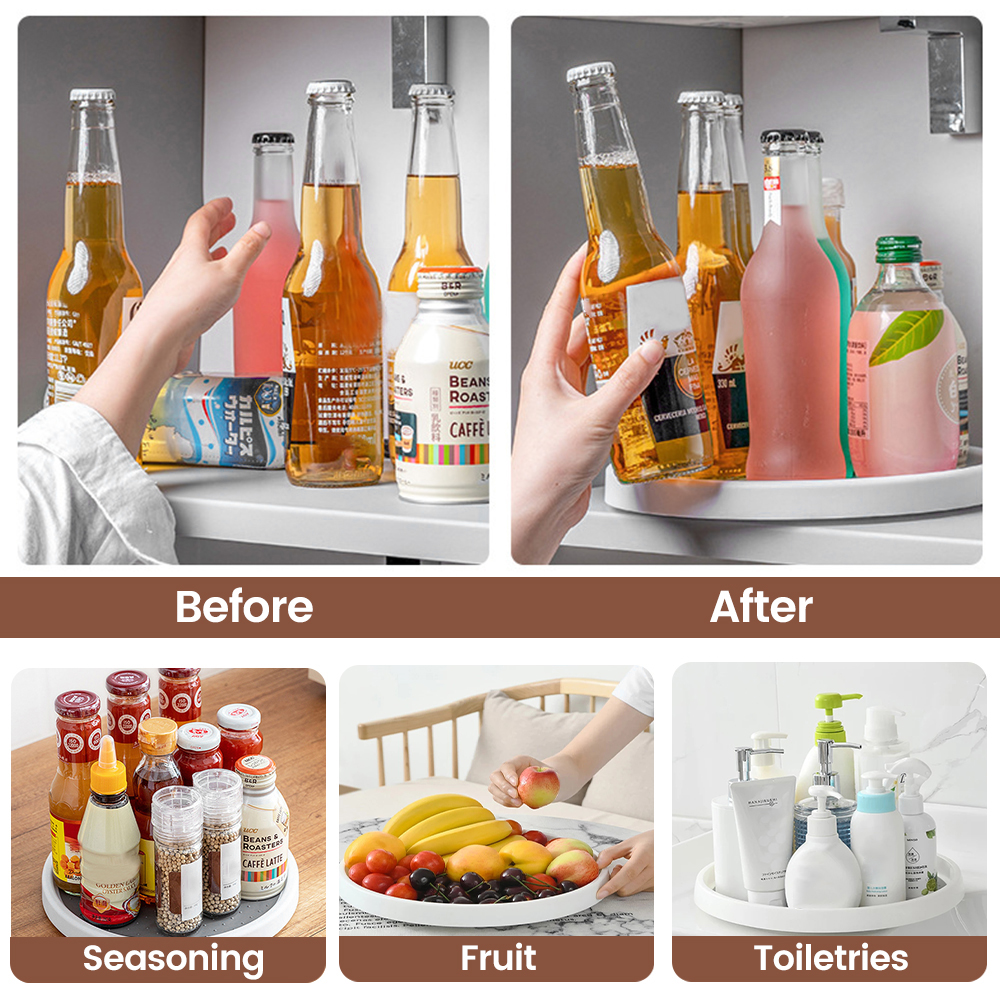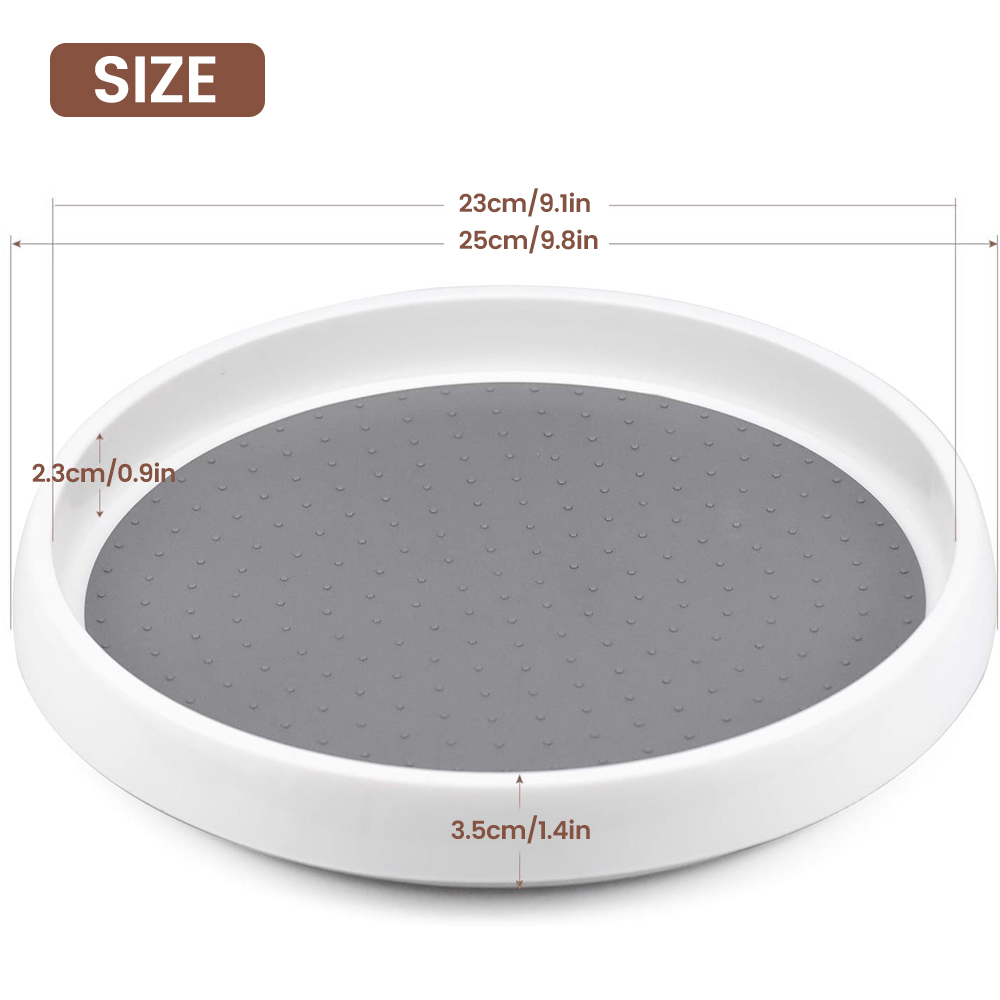 2.The outer edge prevents objects from falling, and the non-slip surface holds objects in place when rotating.