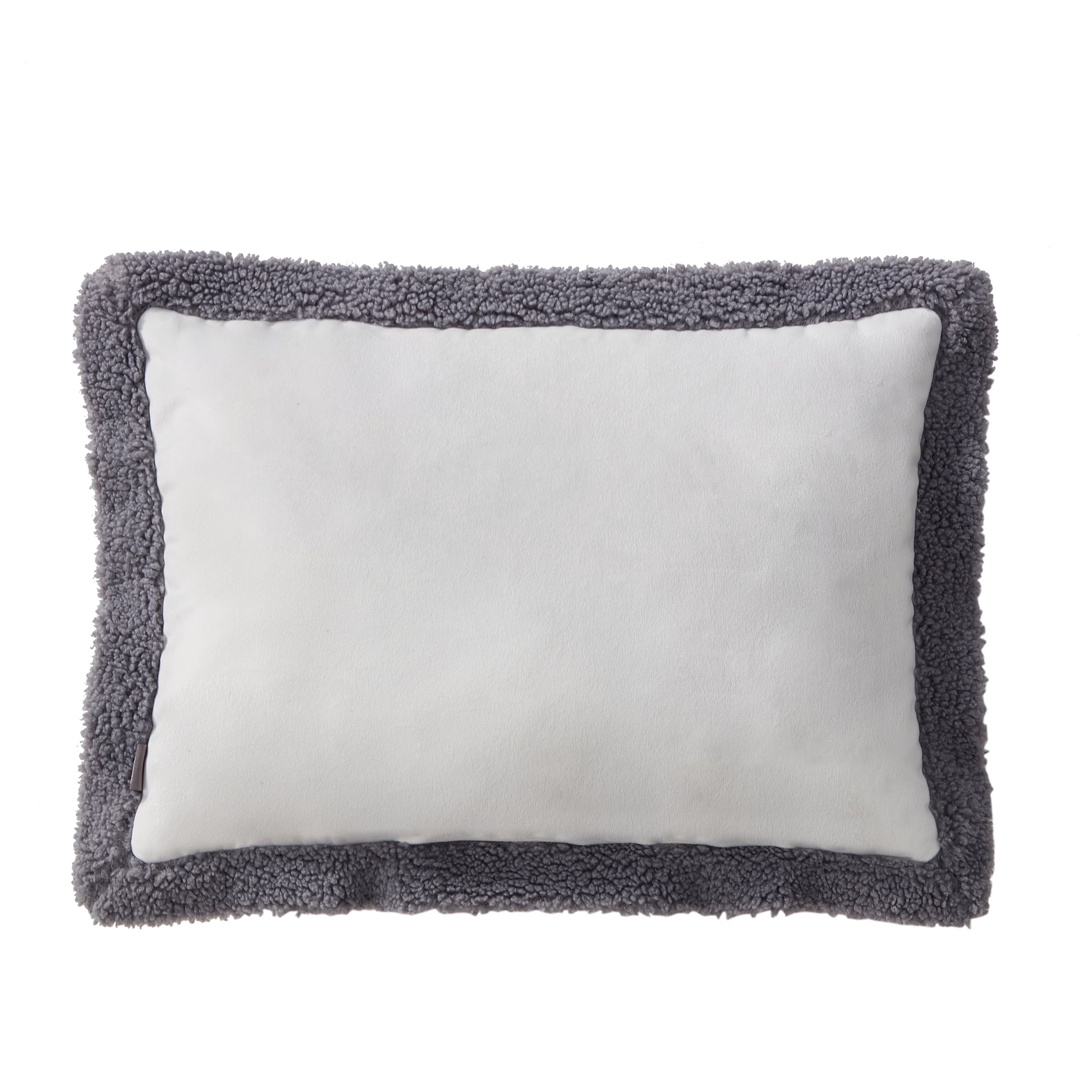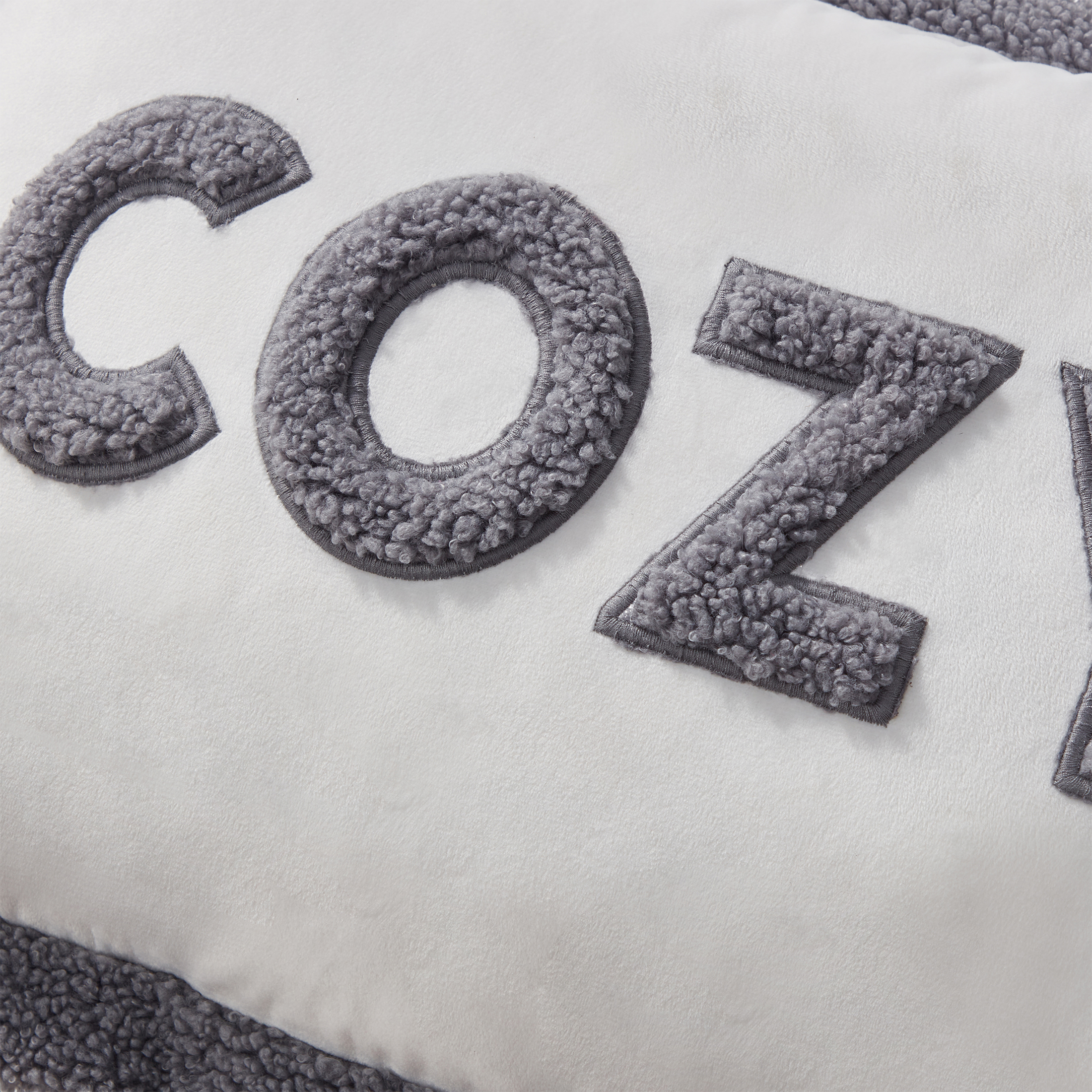 Add soft texture and cozy comfort to your bed, couch, or favorite chair with the Pawz by Bearpaw Ainsley Cozy Typography Mink Sherpa Oblong Decorative Pillow. An eye-catching accent pillow for any room, this white and grey decorative pillow features the word "cozy" in textured letter embroidery, silky mink fabric, and a warm Sherpa trim along the edge for an extra-soft look and feel. This oblong decorative pillow measures 14 x 20 inches and has soft neutral colors to complement your décor. You can easily keep this decorative pillow looking and feeling fresh by spot cleaning it gently with a damp cloth as needed.