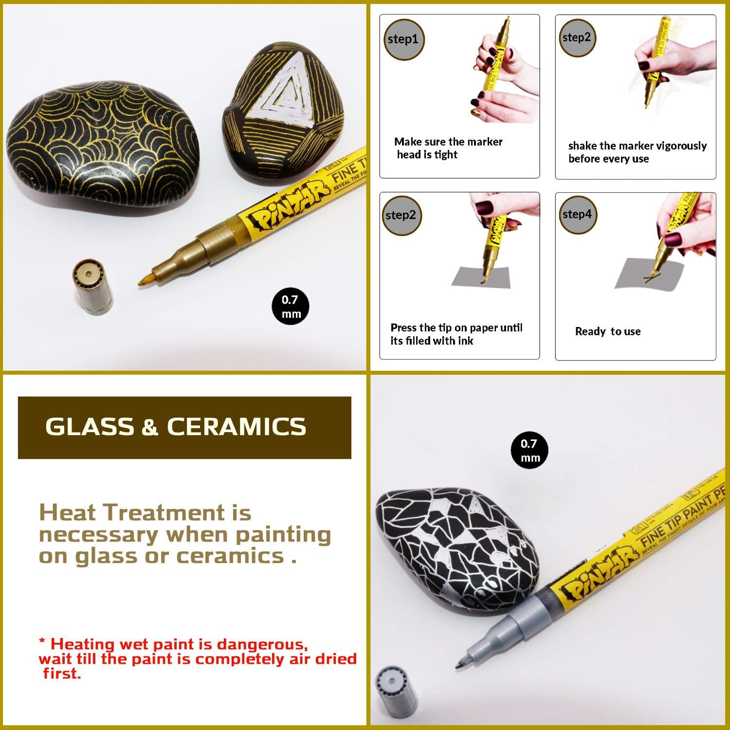 PINTAR Premium Acrylic Paint Pens – 3 Gold & 3 Silver(6-Pack) Extra Fine Tip(0.7) Rock Painting, Ceramic Glass, Wood, Paper, Fabric, Water Resistant Paint Set, Surface Pen, Craft Supplies, DIY Project