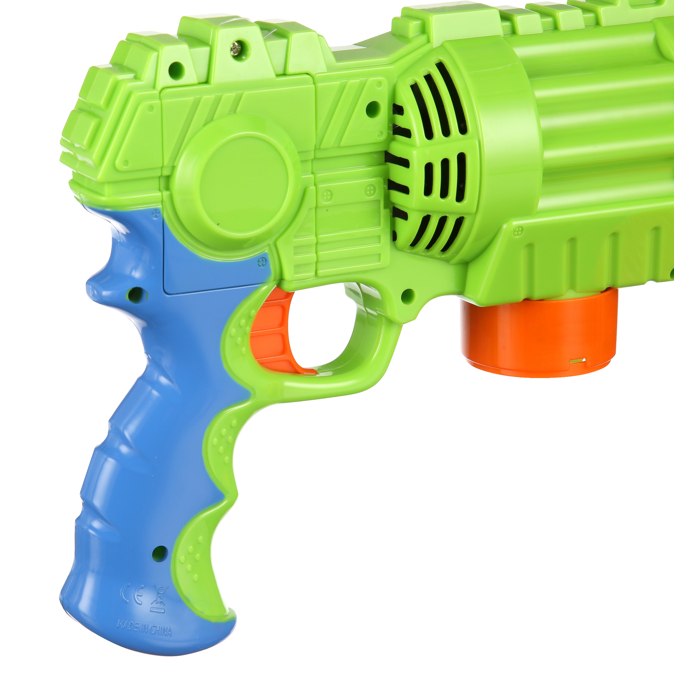 Challenge friends and family to a one-on-one bubble fight or an all-out bubble war with the Play Day Bubble Blaster. An excellent companion to have on hand or in your arsenal of bubble-based equipment, the Play Day Bubble Blaster uses the attached bubble solution bottle as a "magazine" to instantly begin blowing hundreds of bubbles when you pull down and hold onto the trigger. Plus, the well-designed pistol grip allows for precision bubble blowing that’ll thwart your challengers. This bubble blaster is easy and fun to use in any outdoor setting, from trips to the lake with the family or backyard barbeques with friends and neighbors. All you need is your bubble solution, three AA batteries (not included), and your blaster to enjoy some clean and simple family-friendly fun. Have a blast with the Play Day Bubble Blaster!